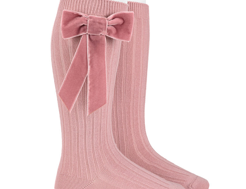 Calzino Alto a Coste con Fiocco Velluto - Condor