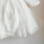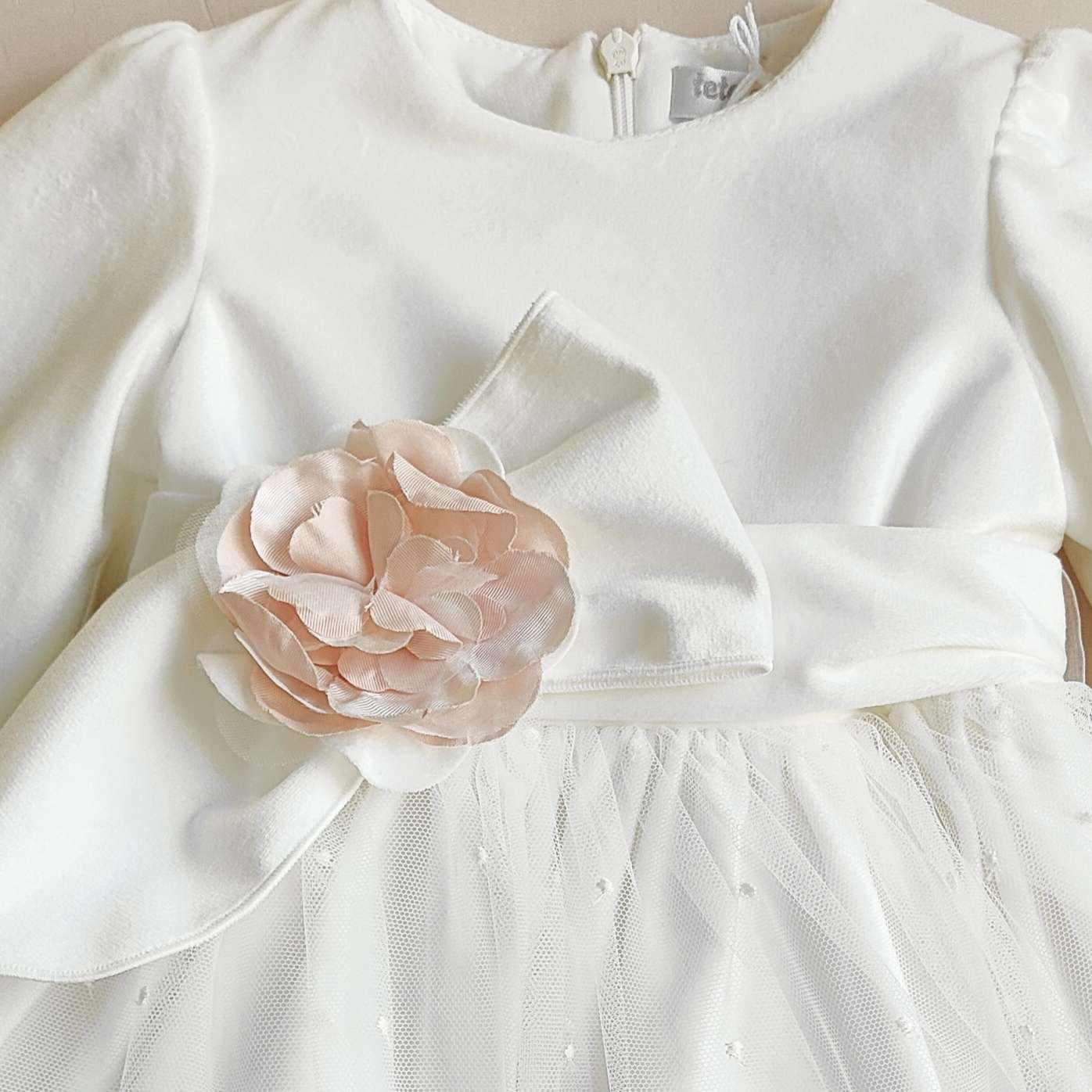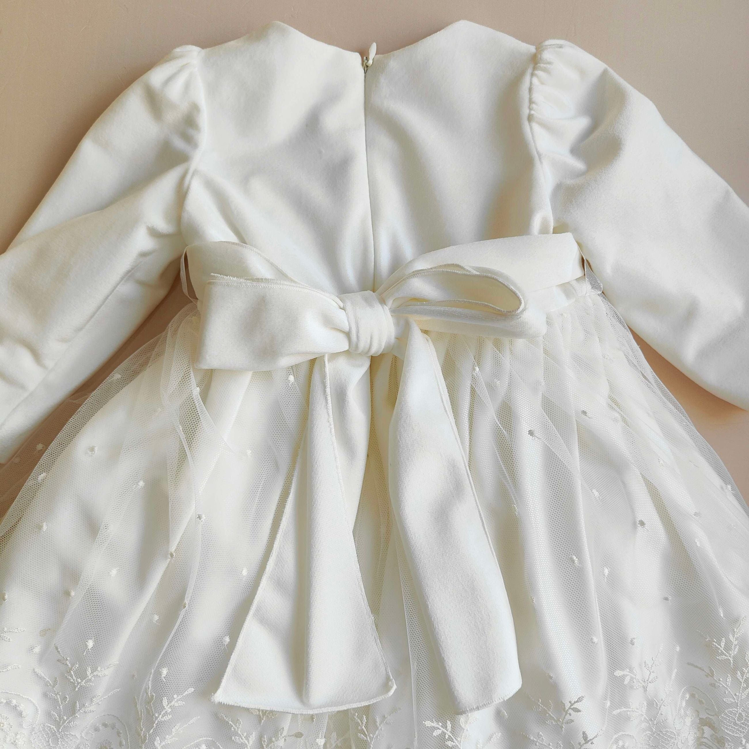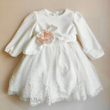 Abitino in tulle ricamato , corpetto e cintura in velluto con bocciolo