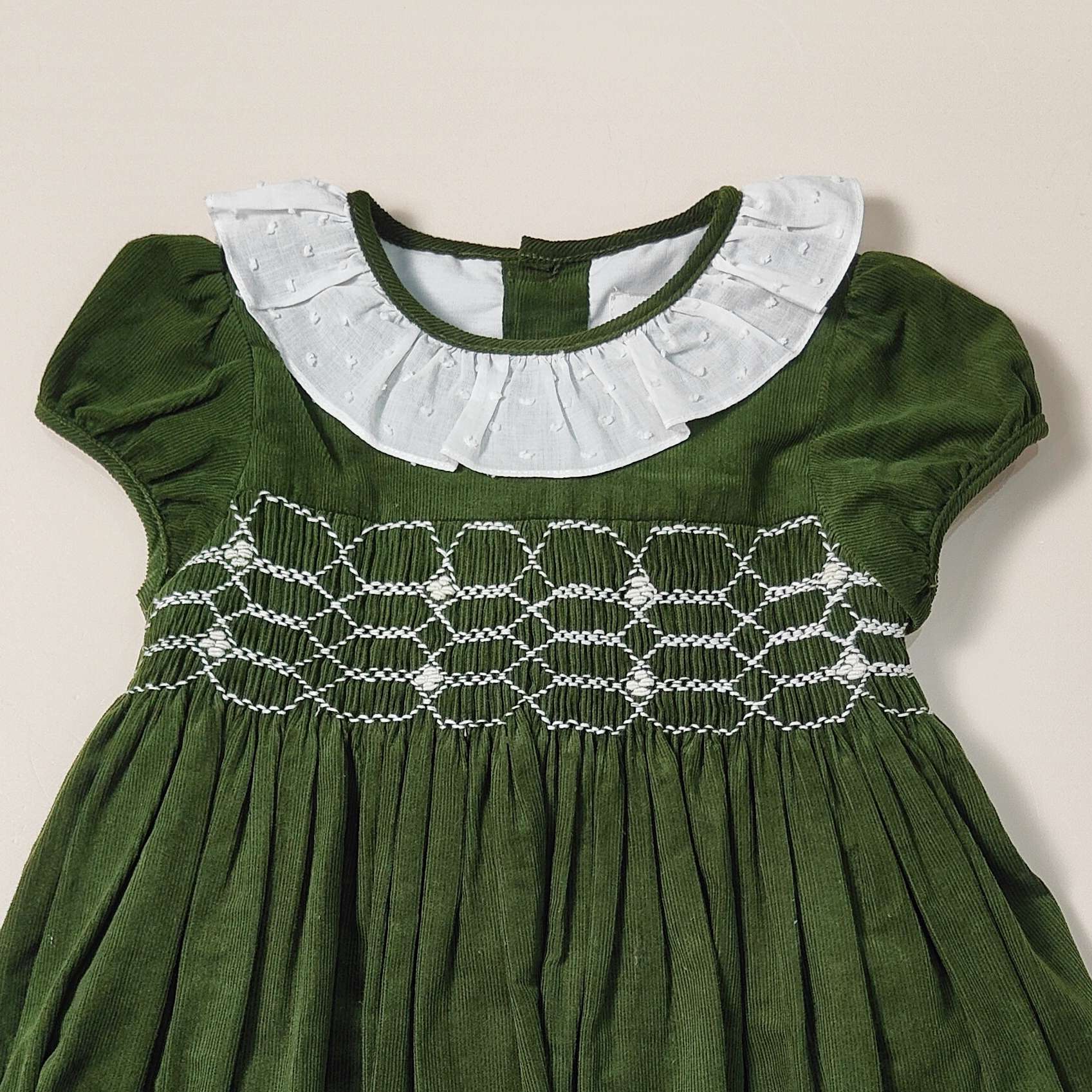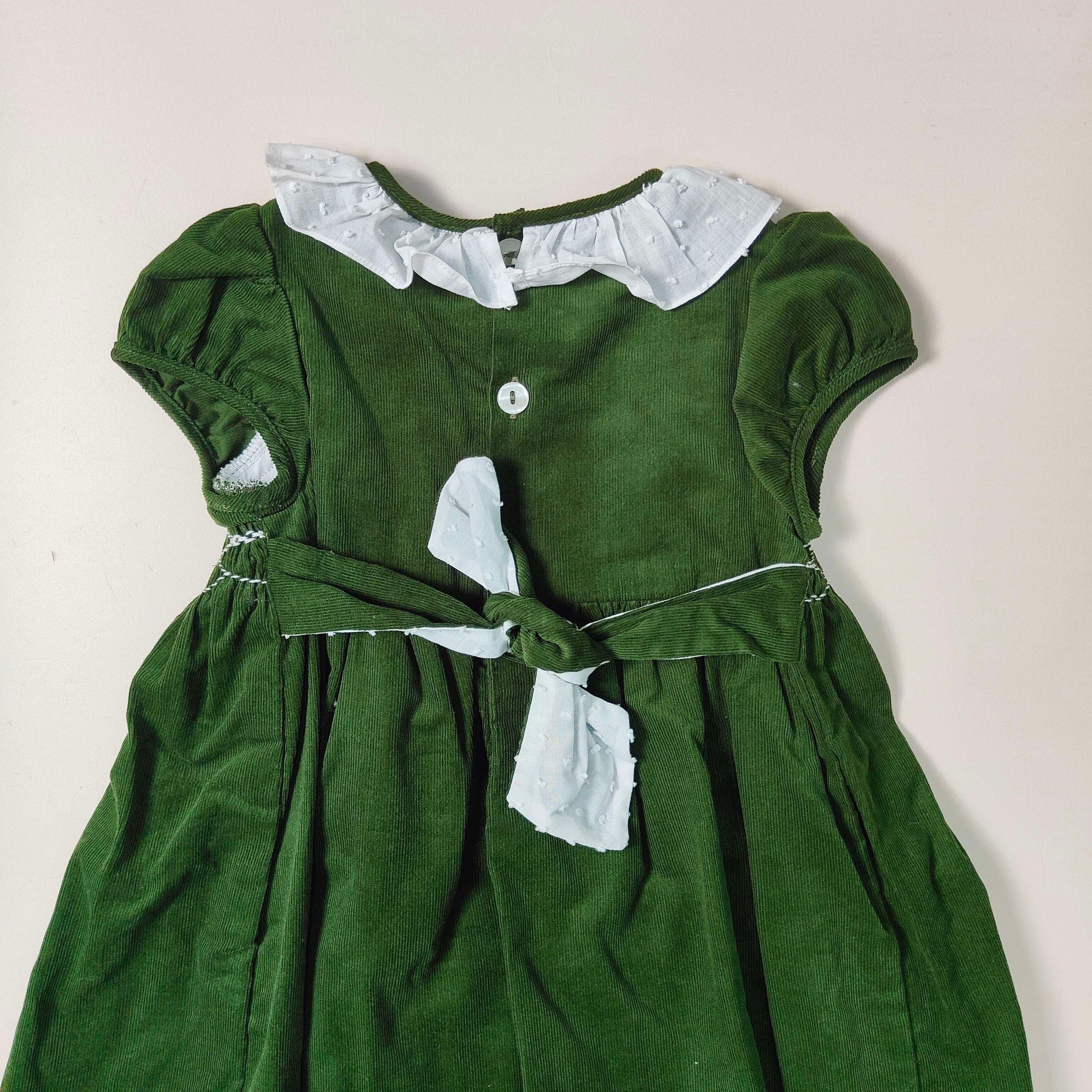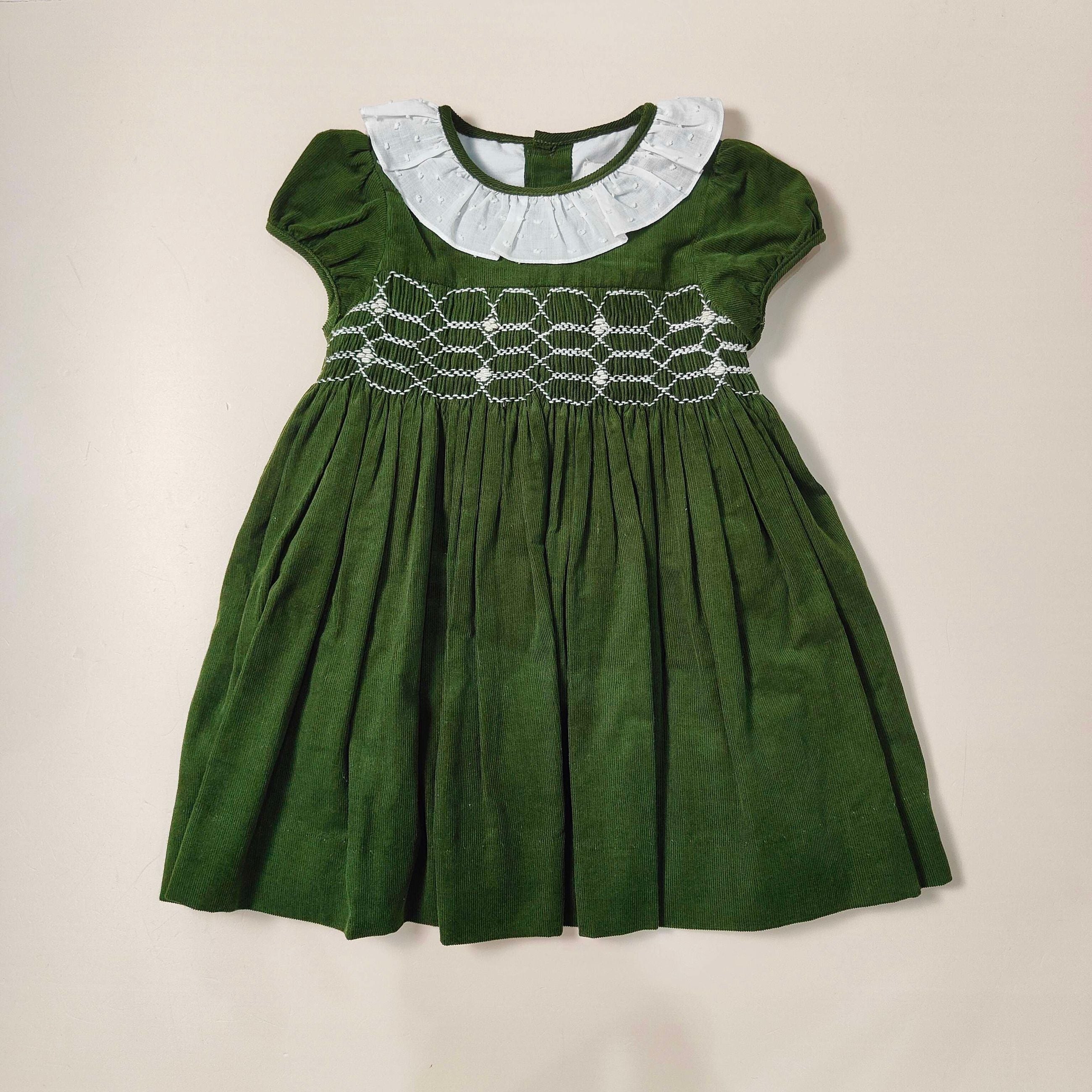 Abitino in vellutino a coste con punto smock ricamato a mano , colletto in plumetis