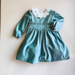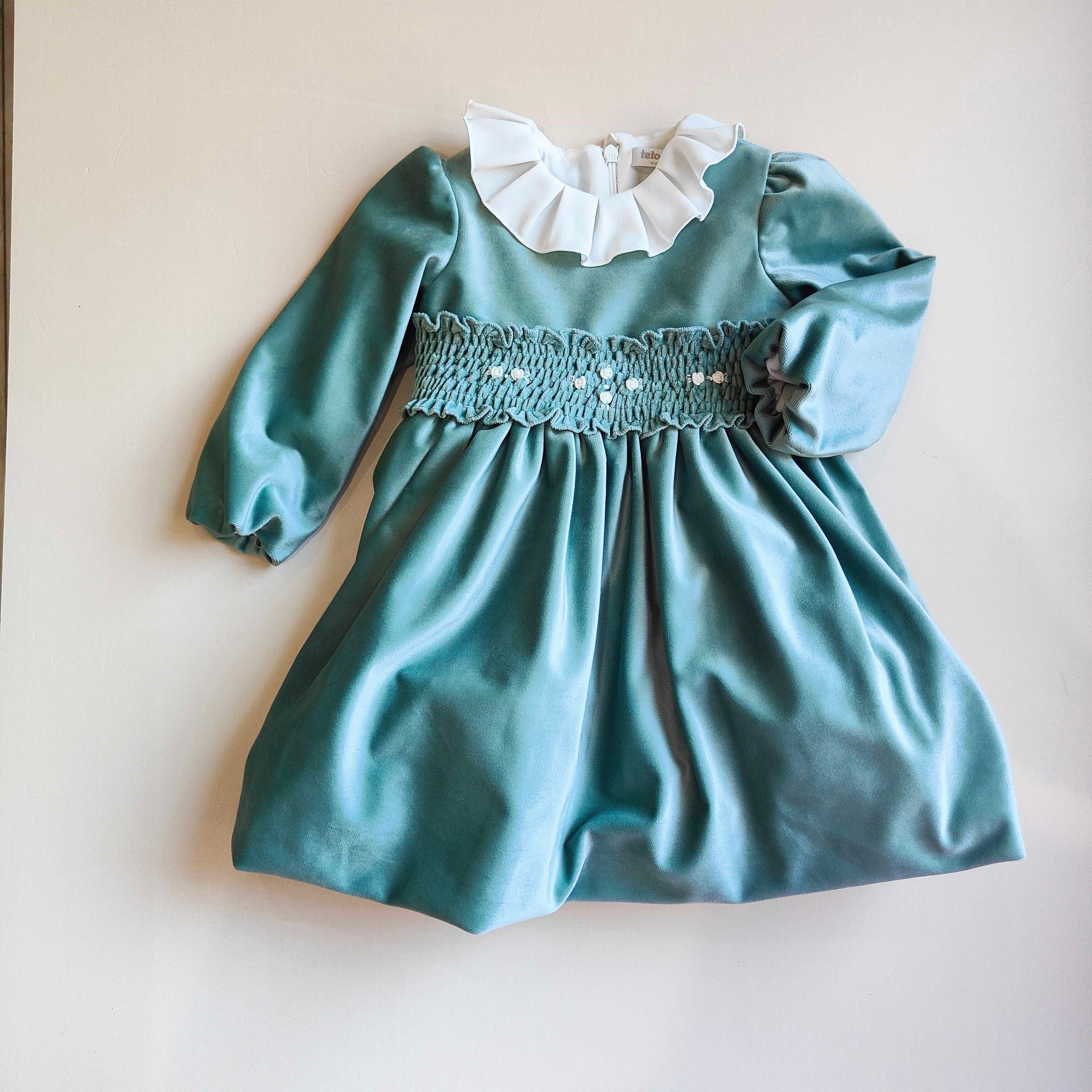 Abitino in velluto con roselline vapore ricamate a mano , fioccone sul retro