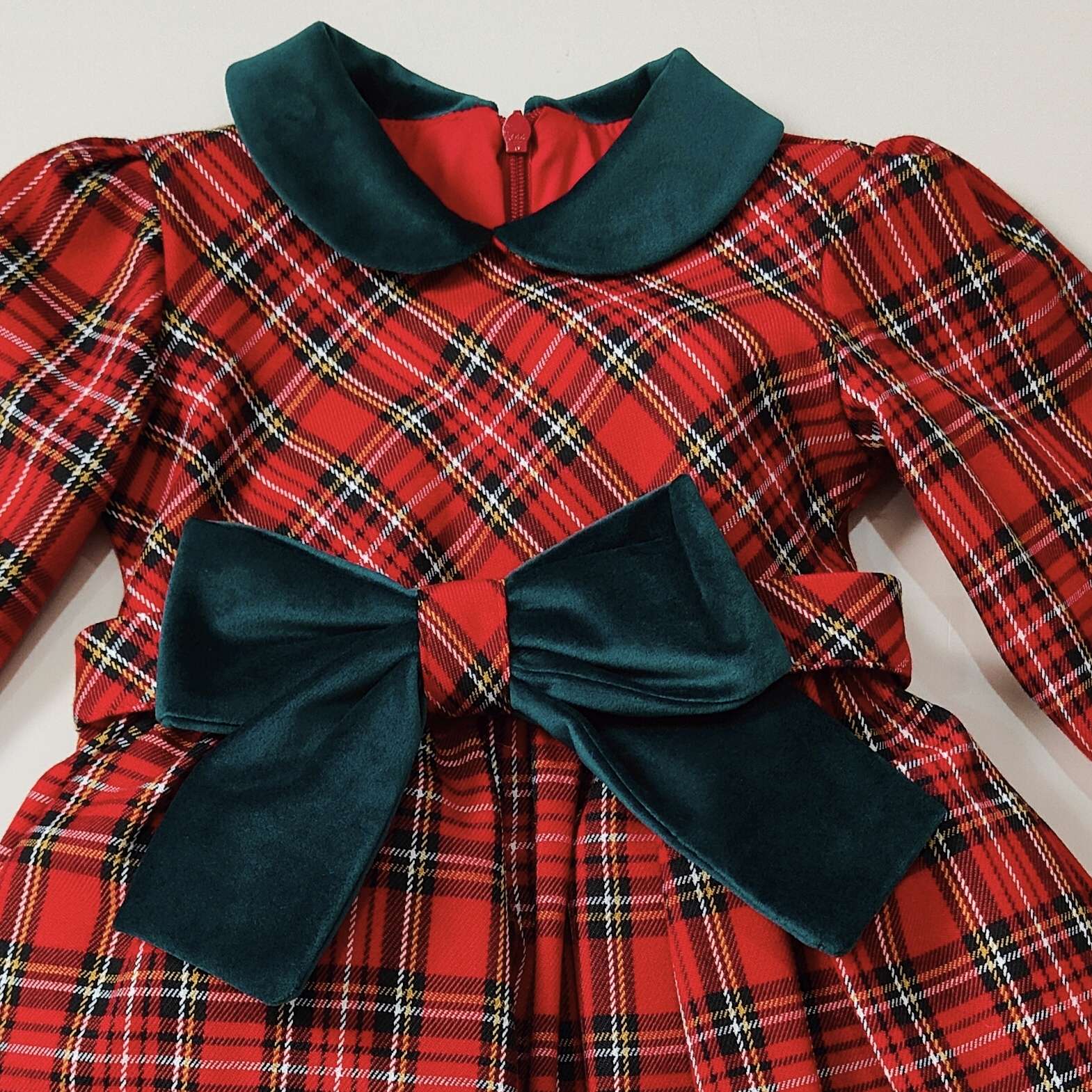 Abitino tartan con fiocco in velluto