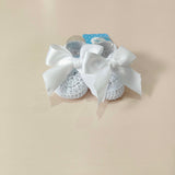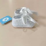 Babbucce in filo con fiocchetto in raso , misura unica 0/3 mesi