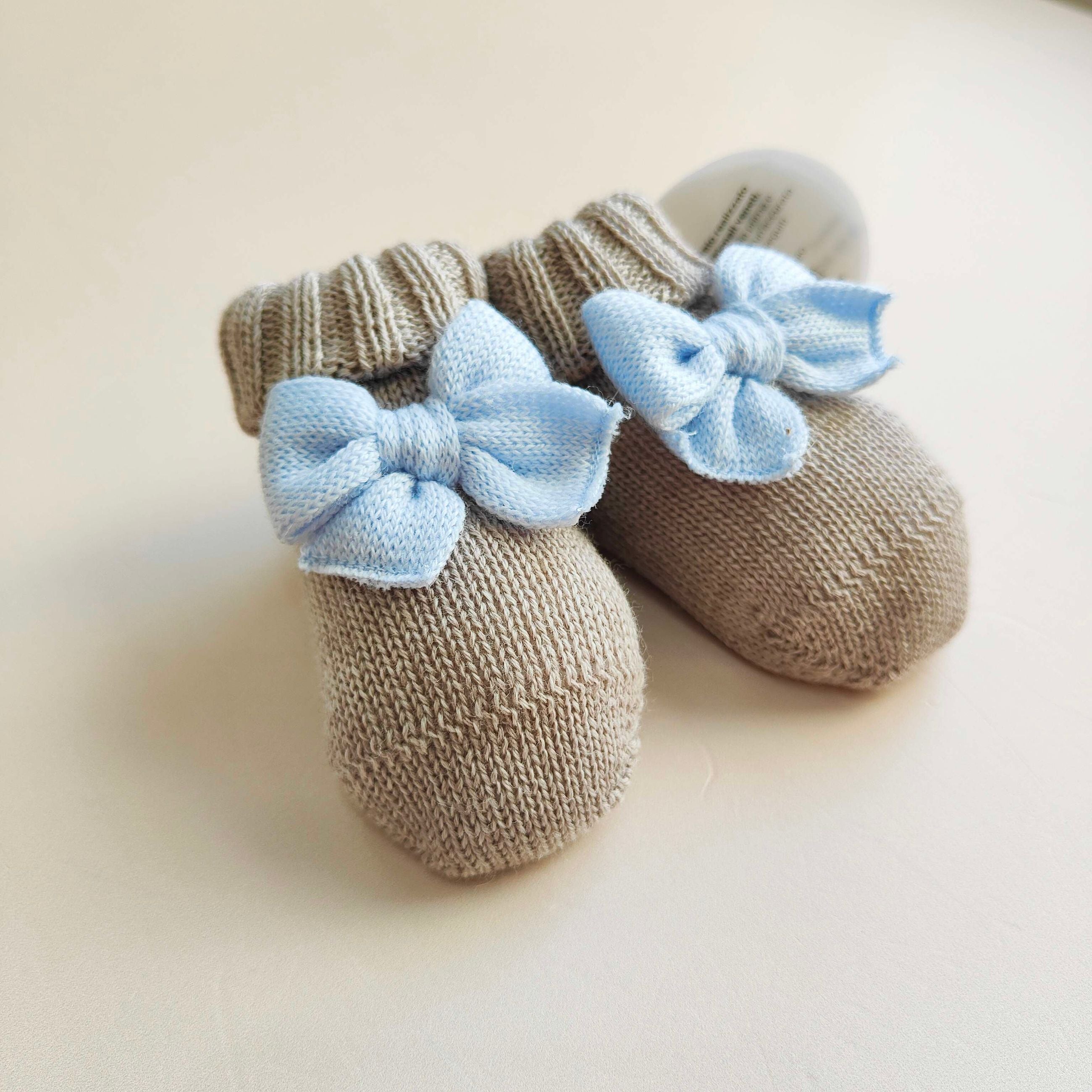 Babbucce in pura lana merino con fiocco, misura 0/3 mesi
