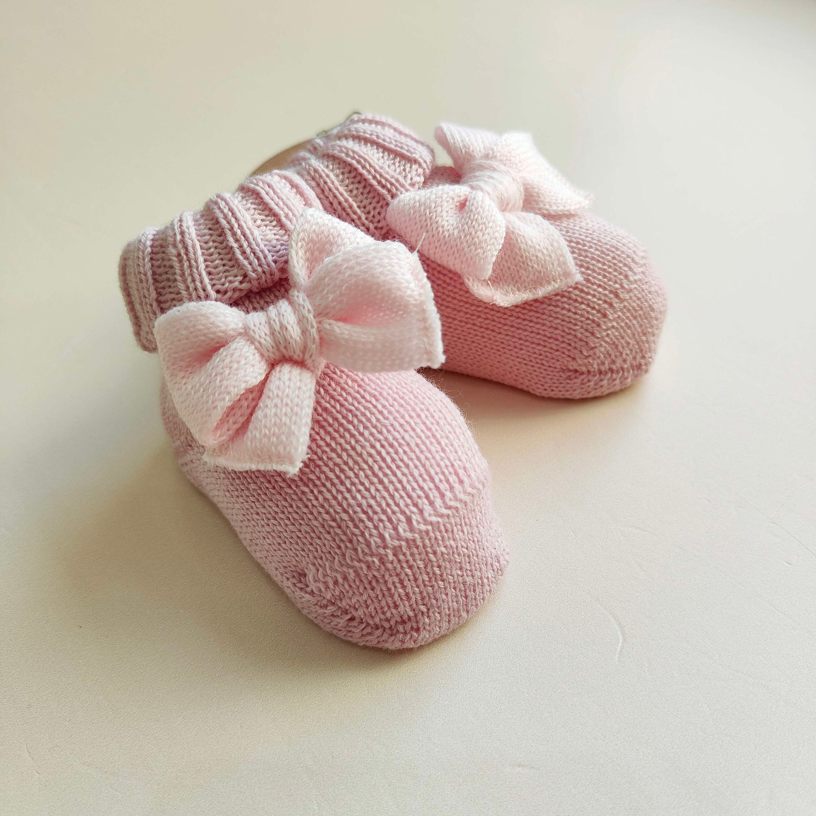 Babbucce in pura lana merino con fiocco, misura 0/3 mesi