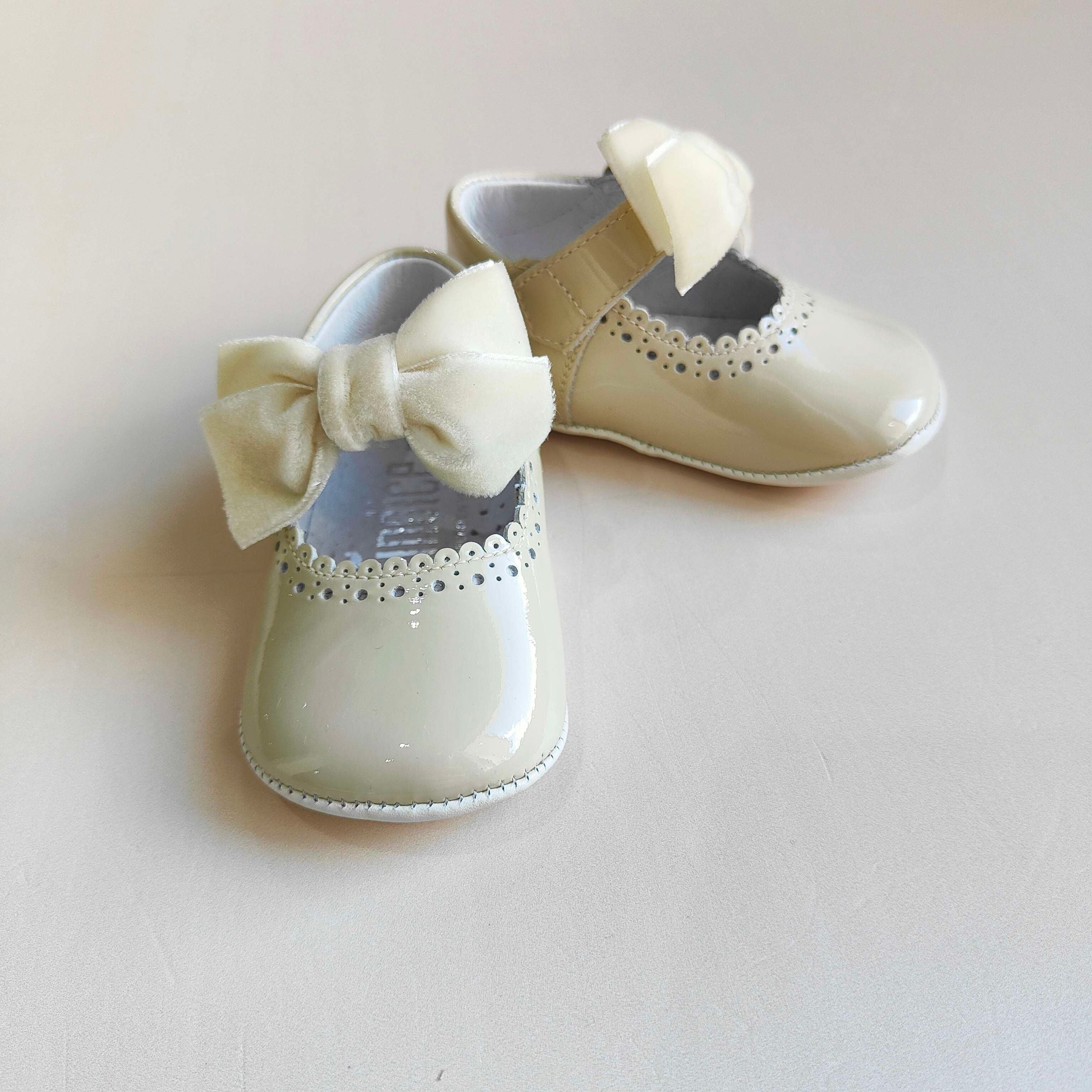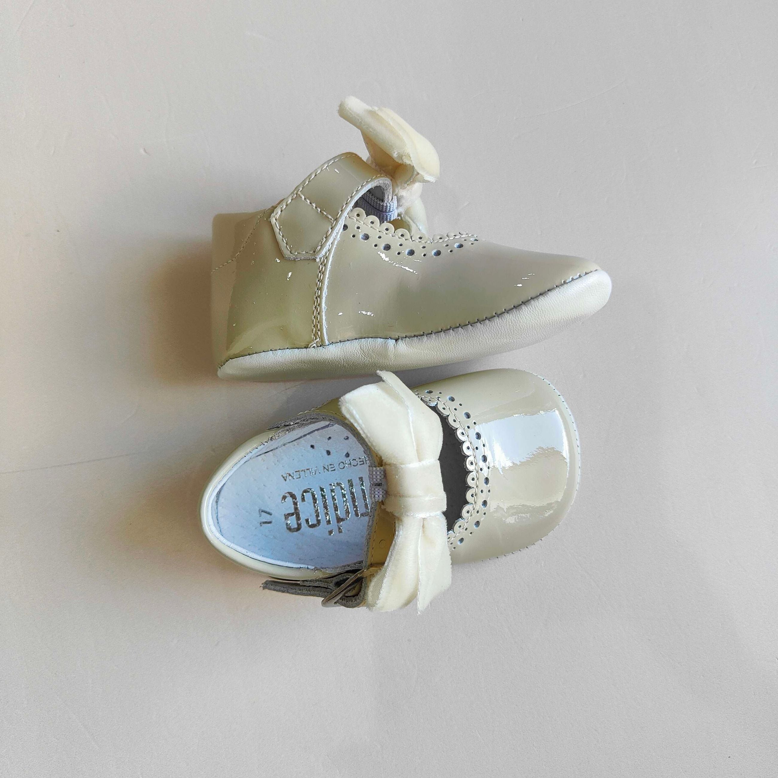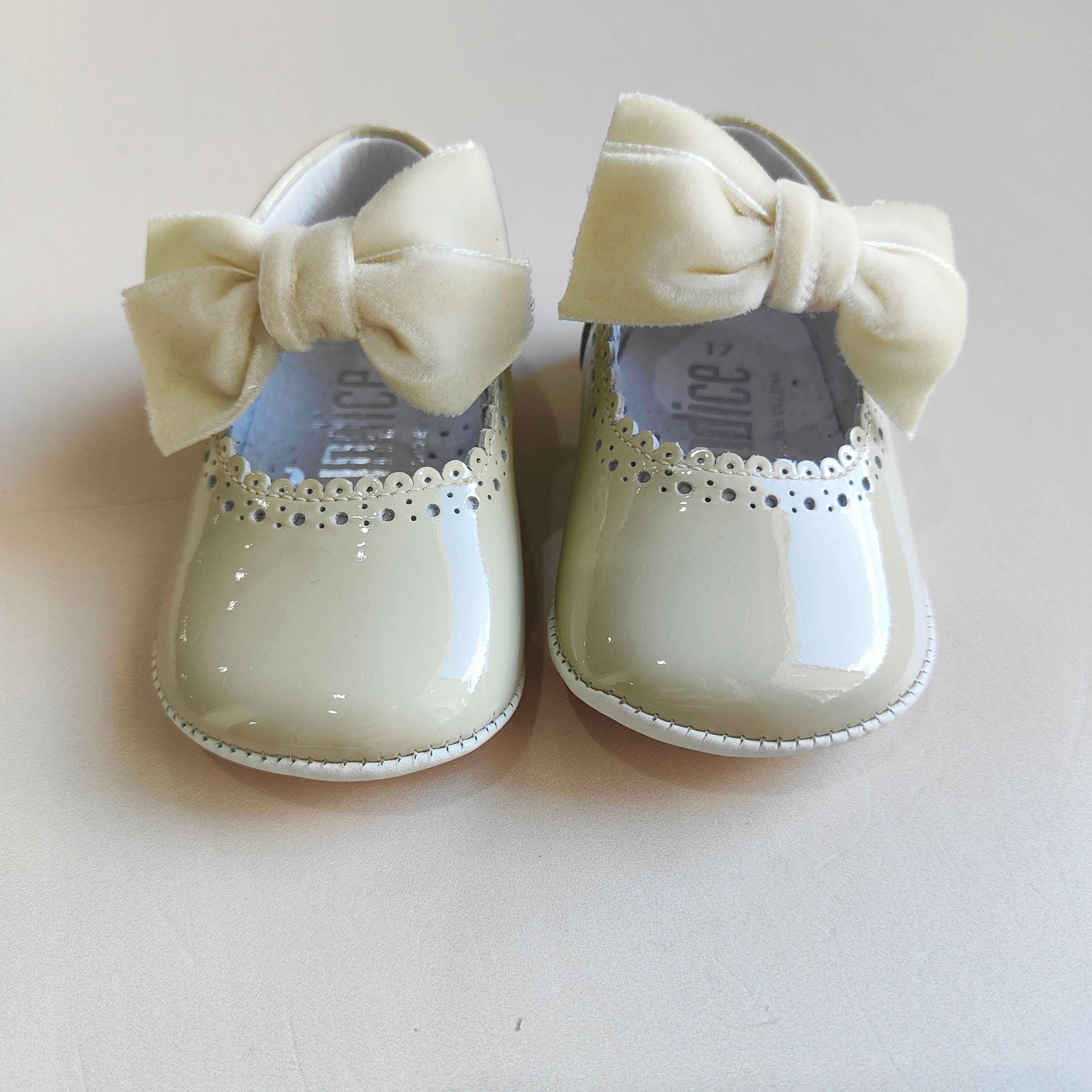 Ballerine culla in vernice con fiocchetto in velluto