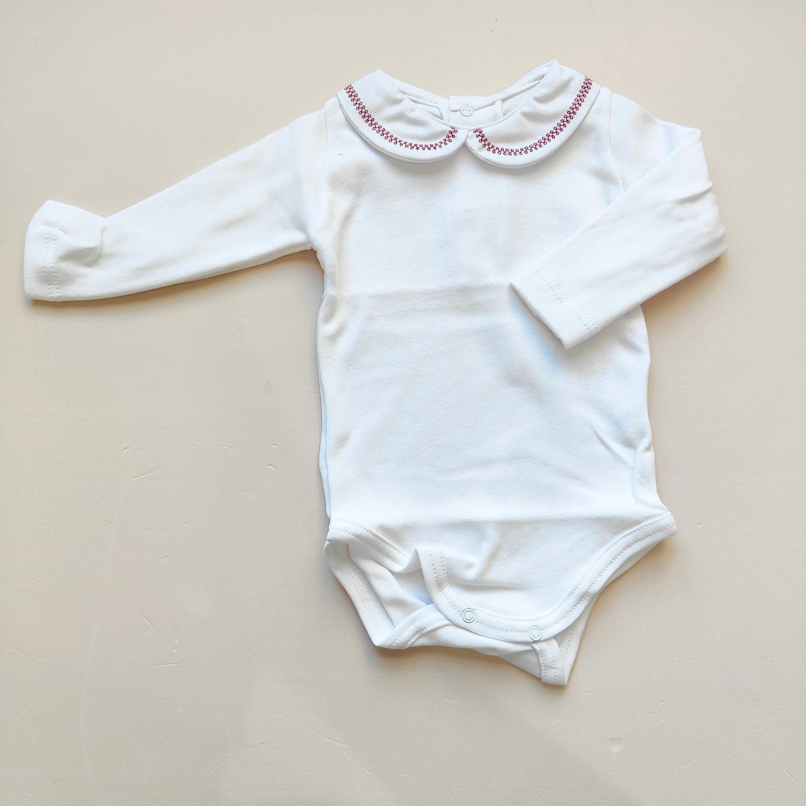 Body camicia con colletto in piquet ricamato