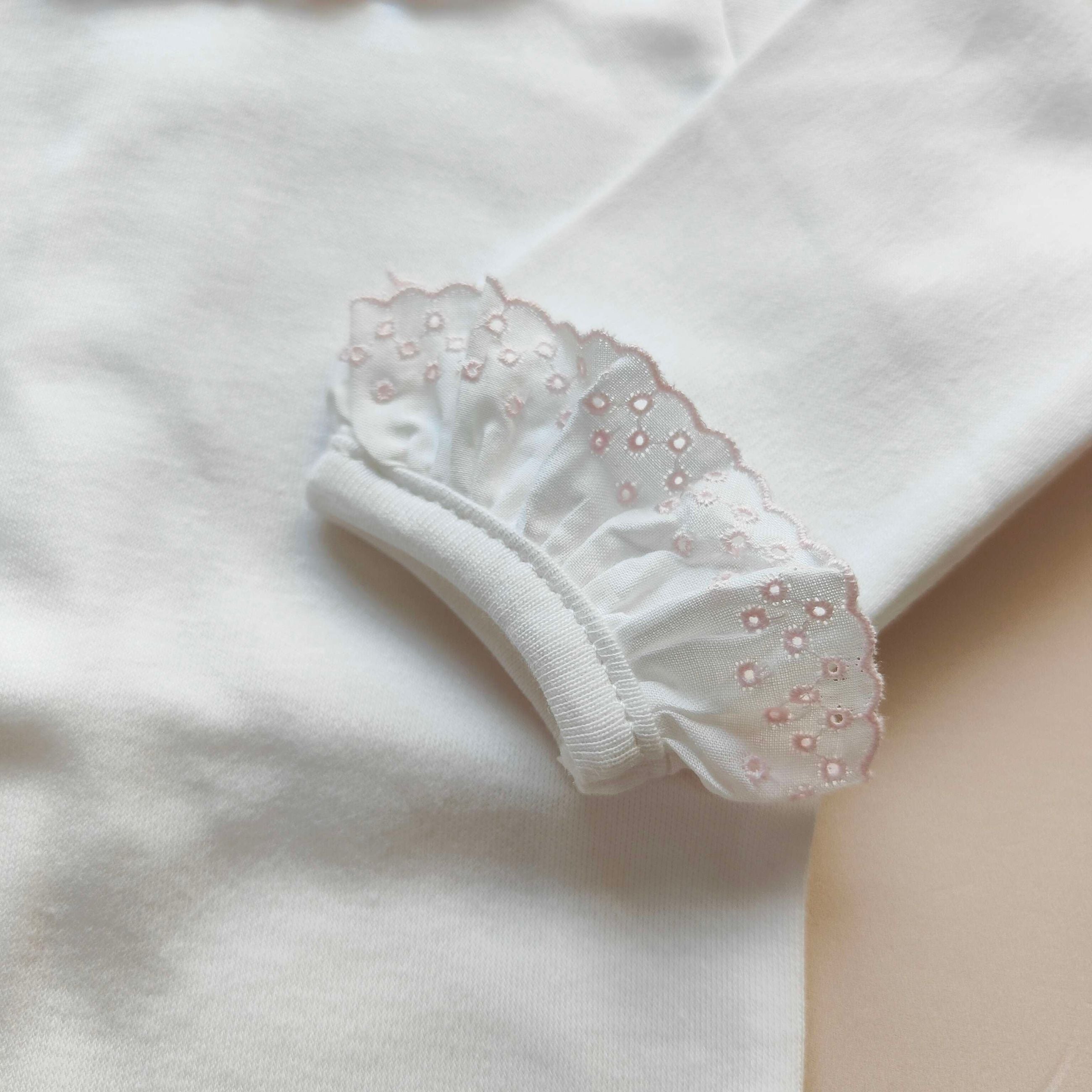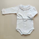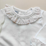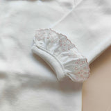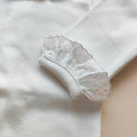 Body esternabile in cotone caldo con pizzo san gallo su collo e maniche