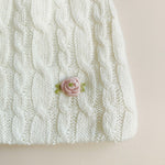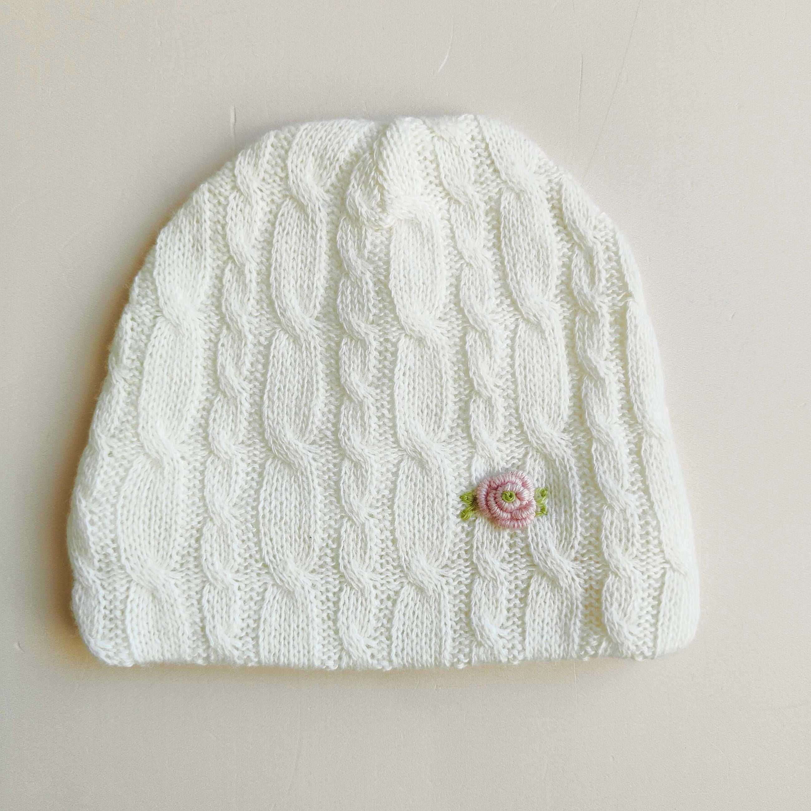 Cappellino in lana e cashmere con rosellina vapore ricamata a mano
