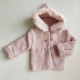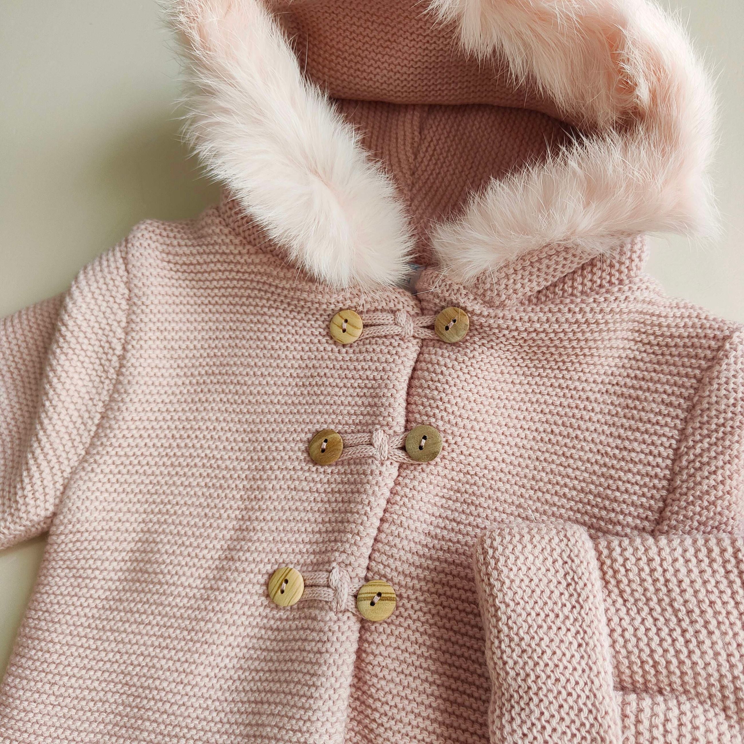Cappottino tricot con pelliccetta sul cappuccio