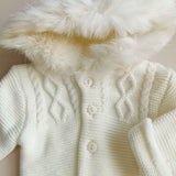 Cappottino tricot con pelliccetta sul cappuccio
