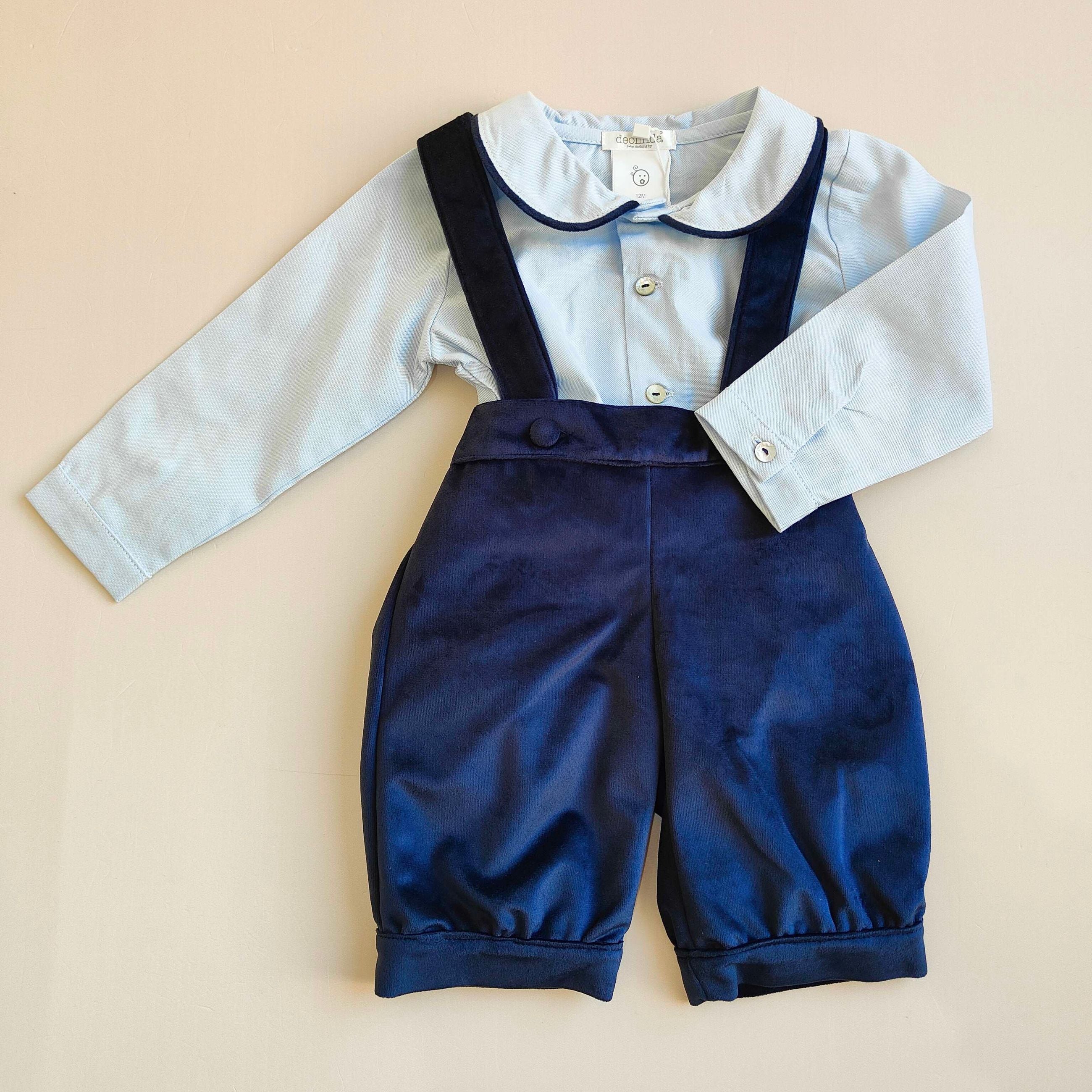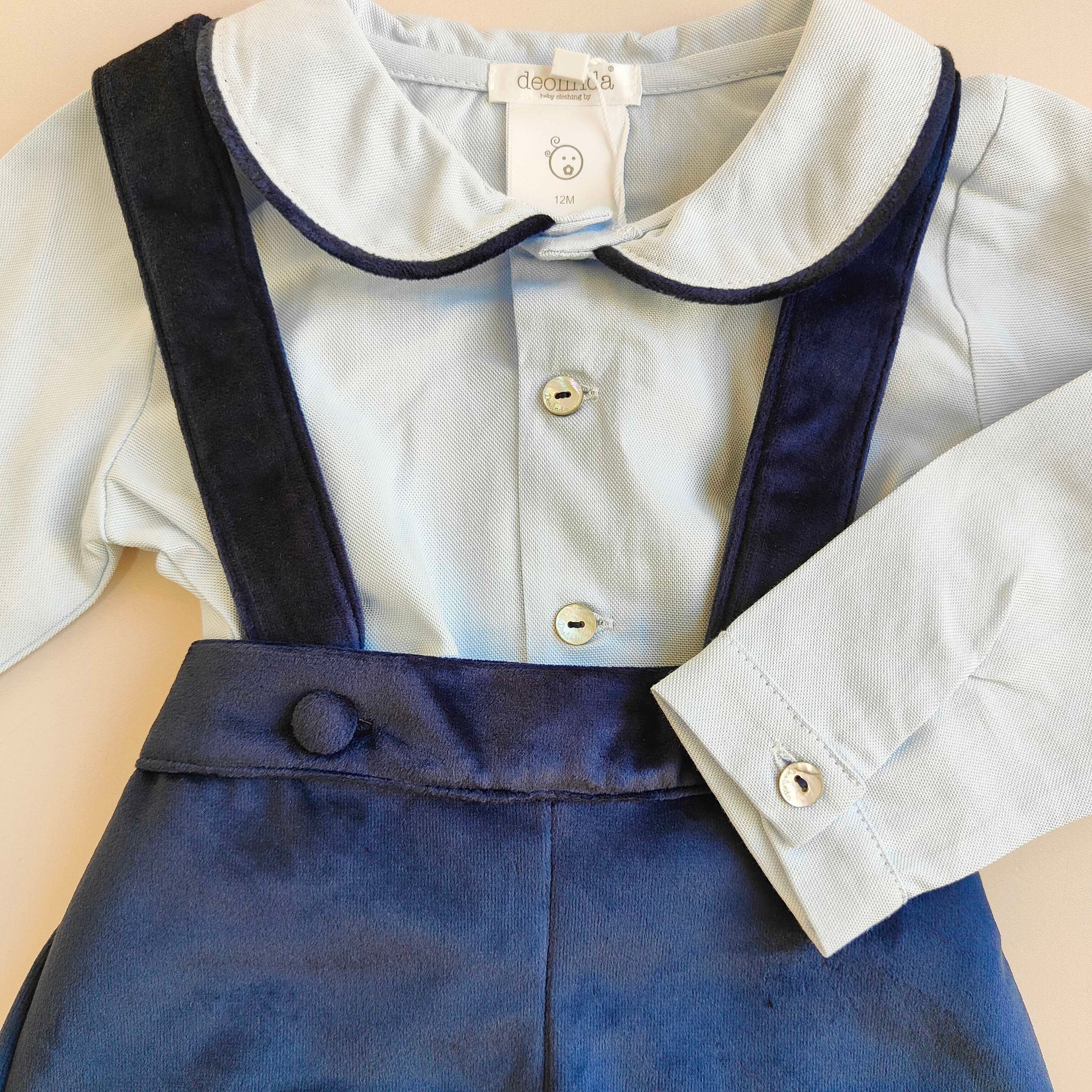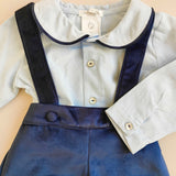 Salopettina in velluto con camicina colletto profilato