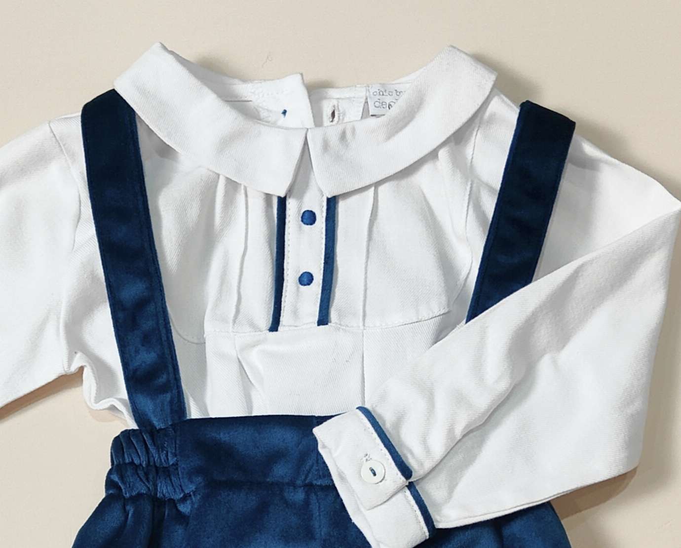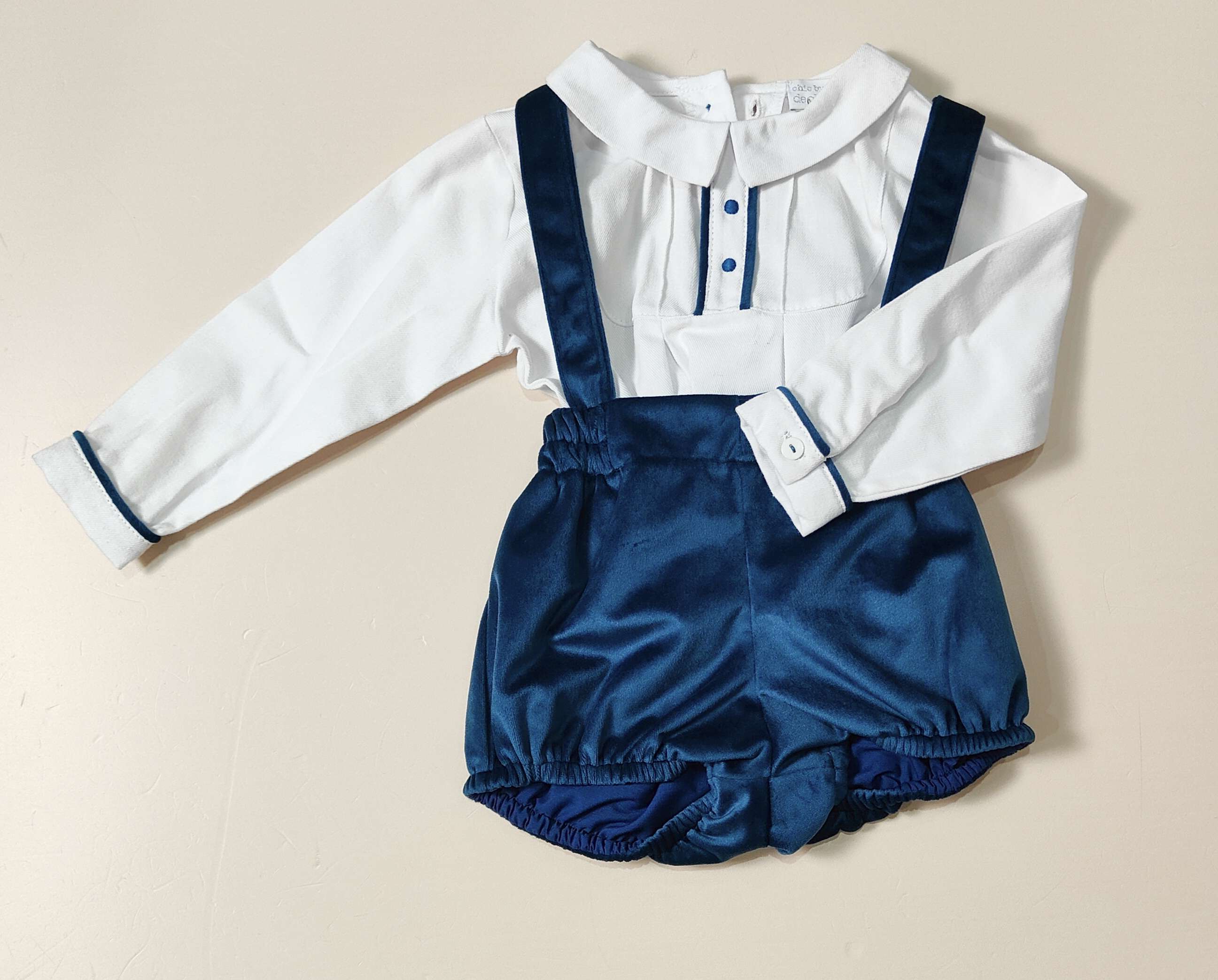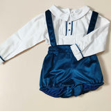 Salopettina in velluto con camicina ricamata