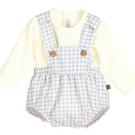 Salopettina vichy con maglioncino in cotone caldo