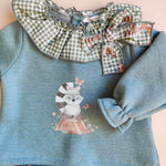 -Felpina con stampa , colletto vichy e fiocco