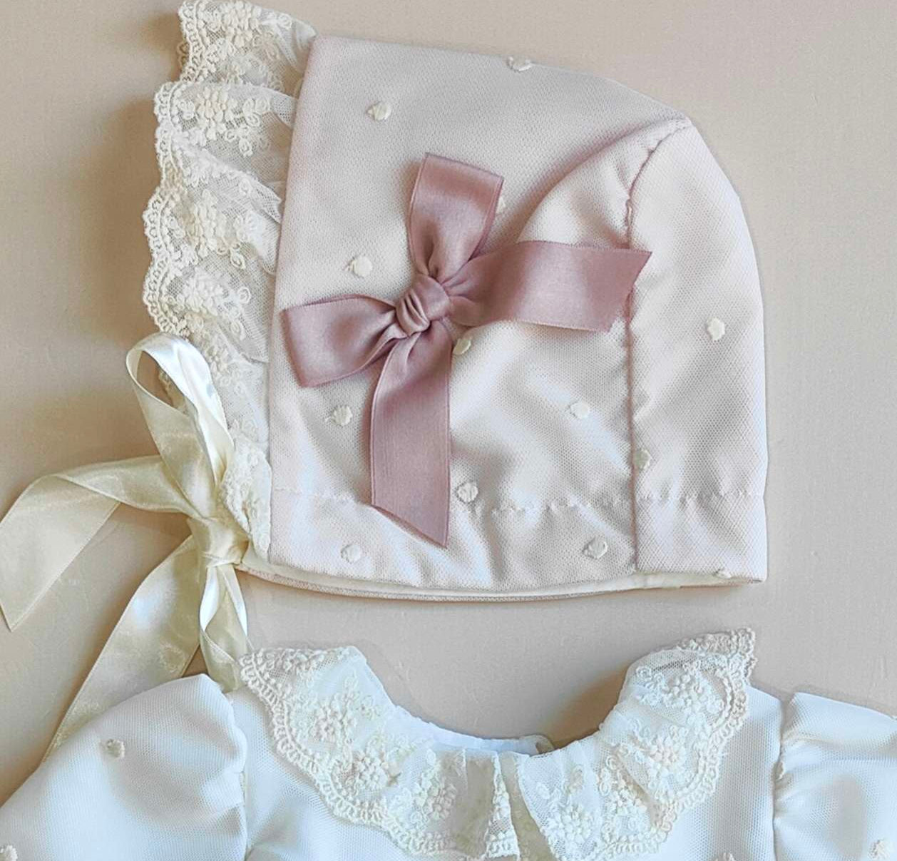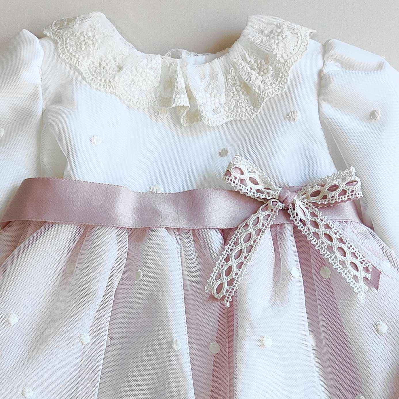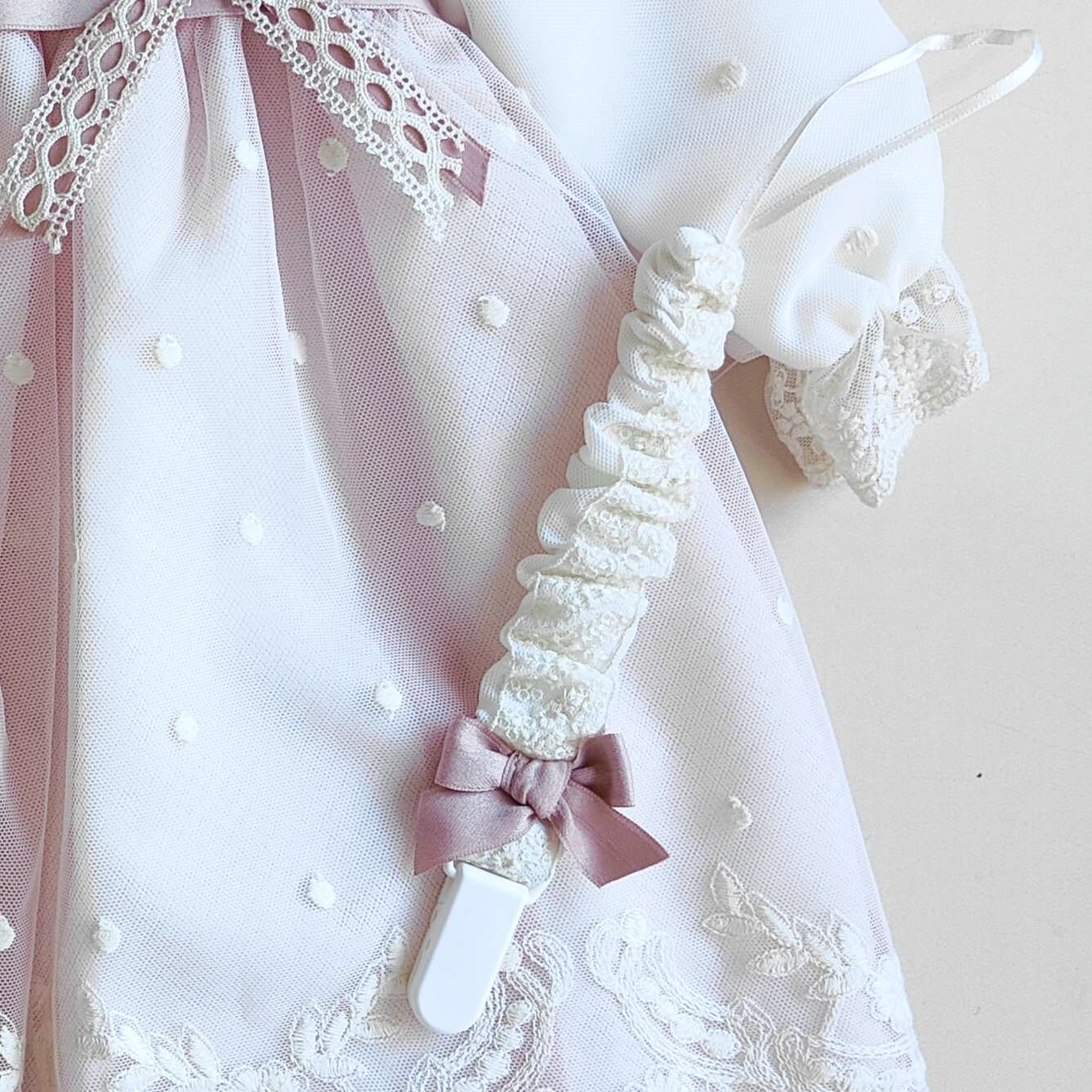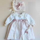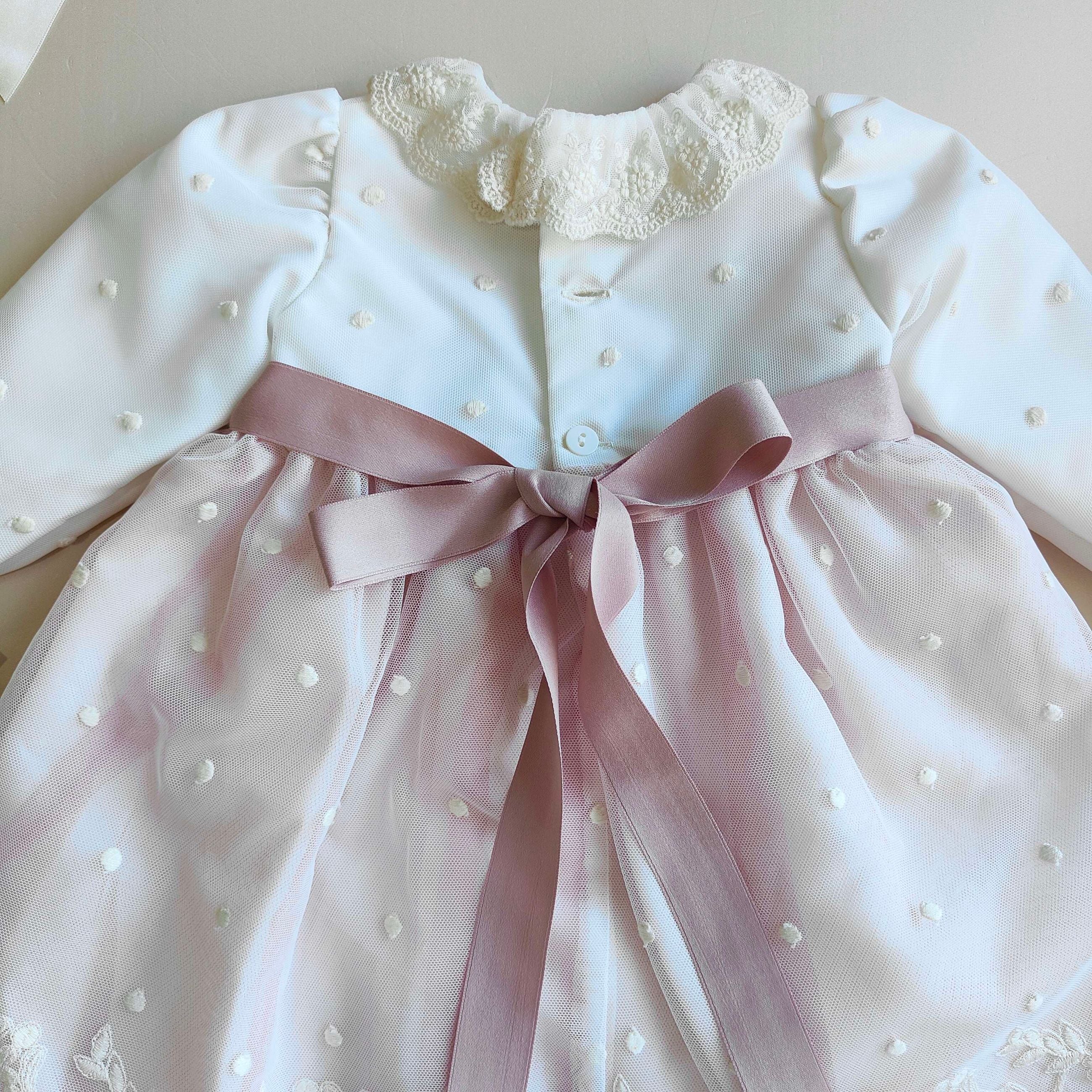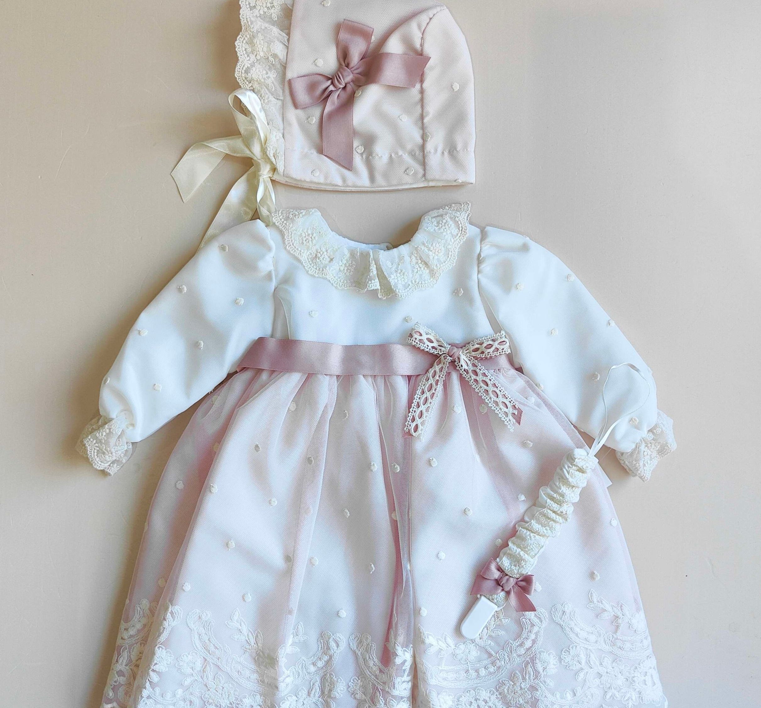 Completo Battesimale con Pizzo e Tulle - Ponto Por Ponto