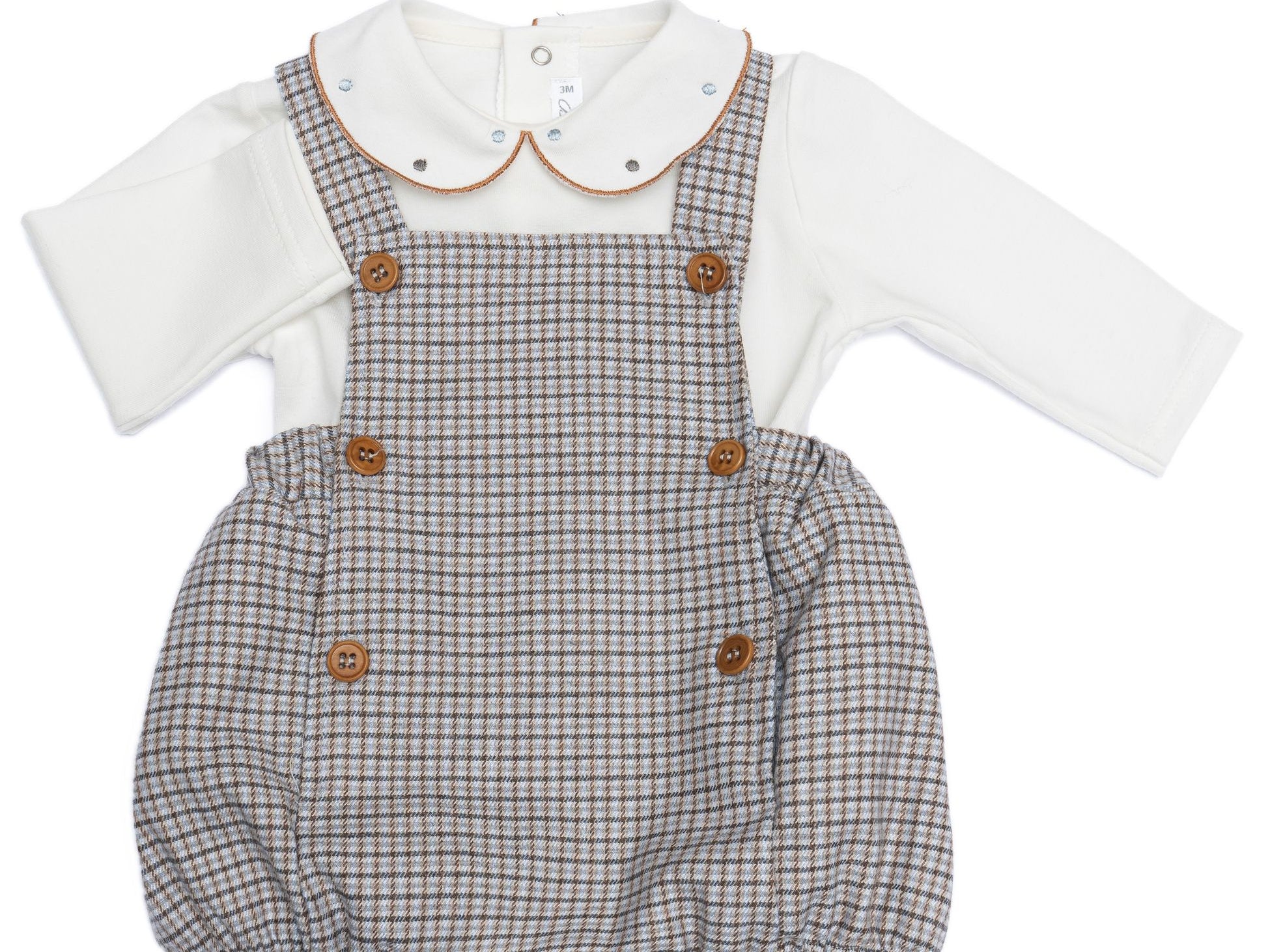 Completo composto da camicina body colletto ricamato con salopettina pied de poule