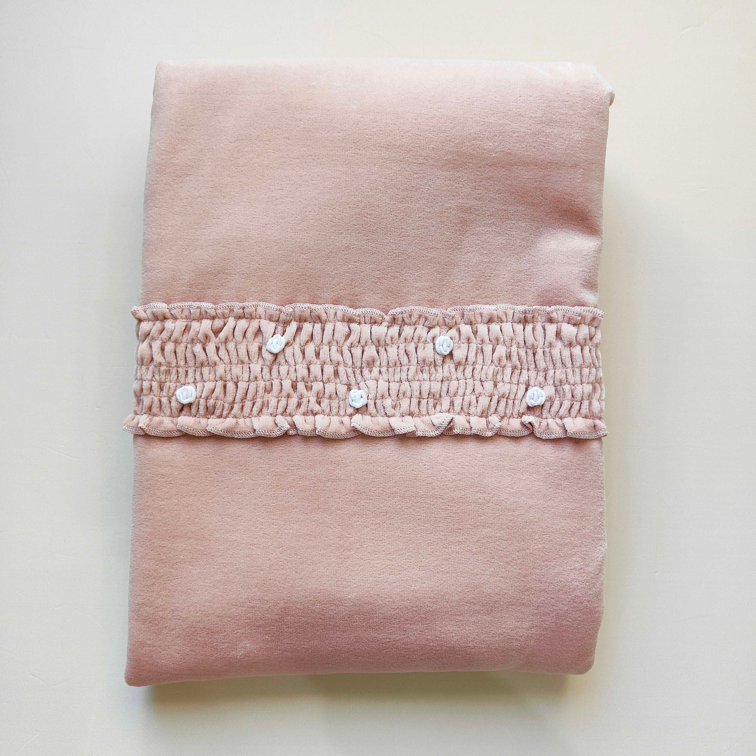 Copertina in ciniglia con roselline ricamate a mano
