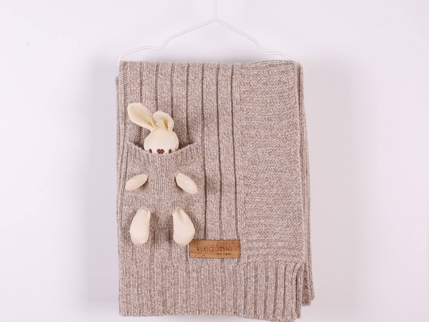 Copertina in pura lana merino a coste con doudou nel taschino