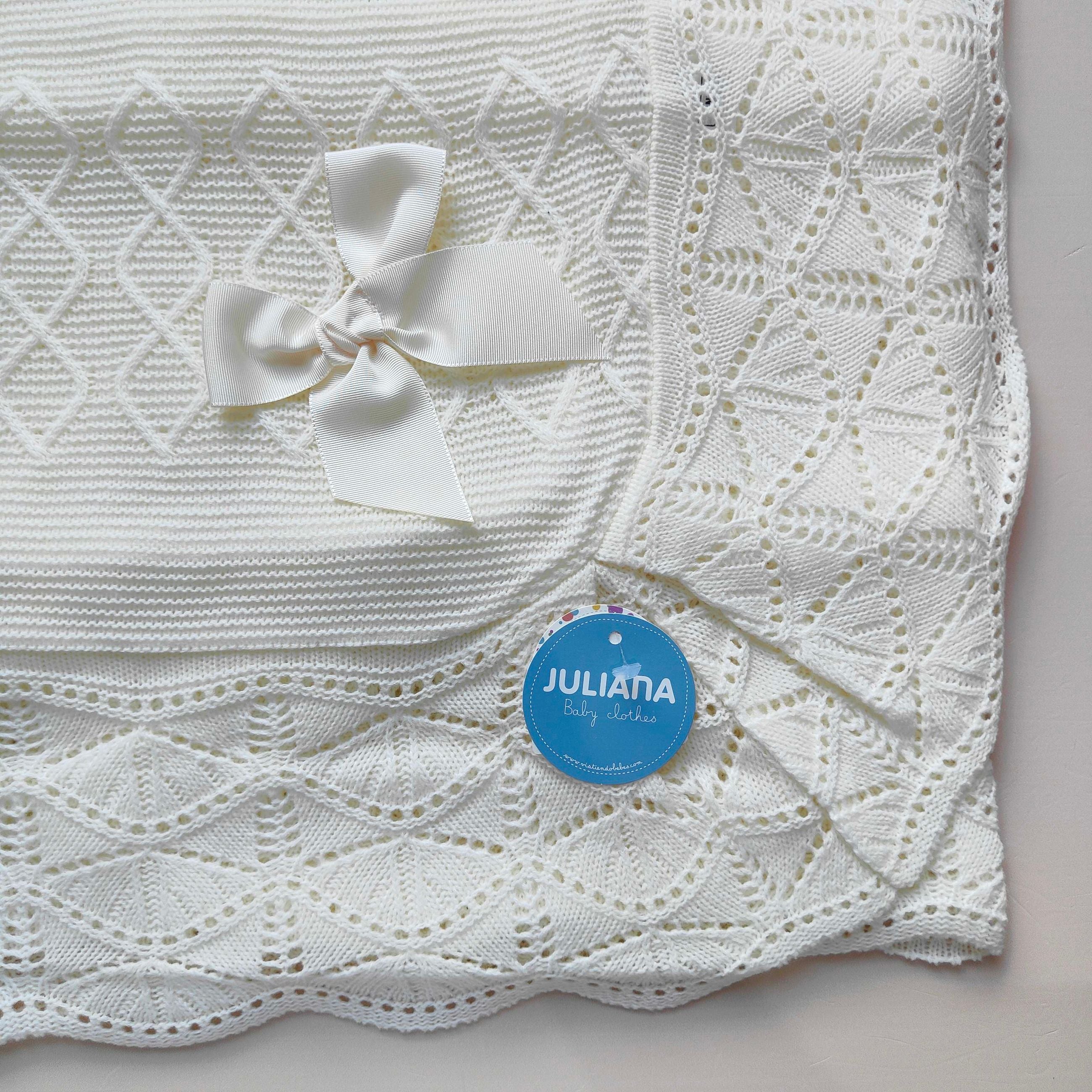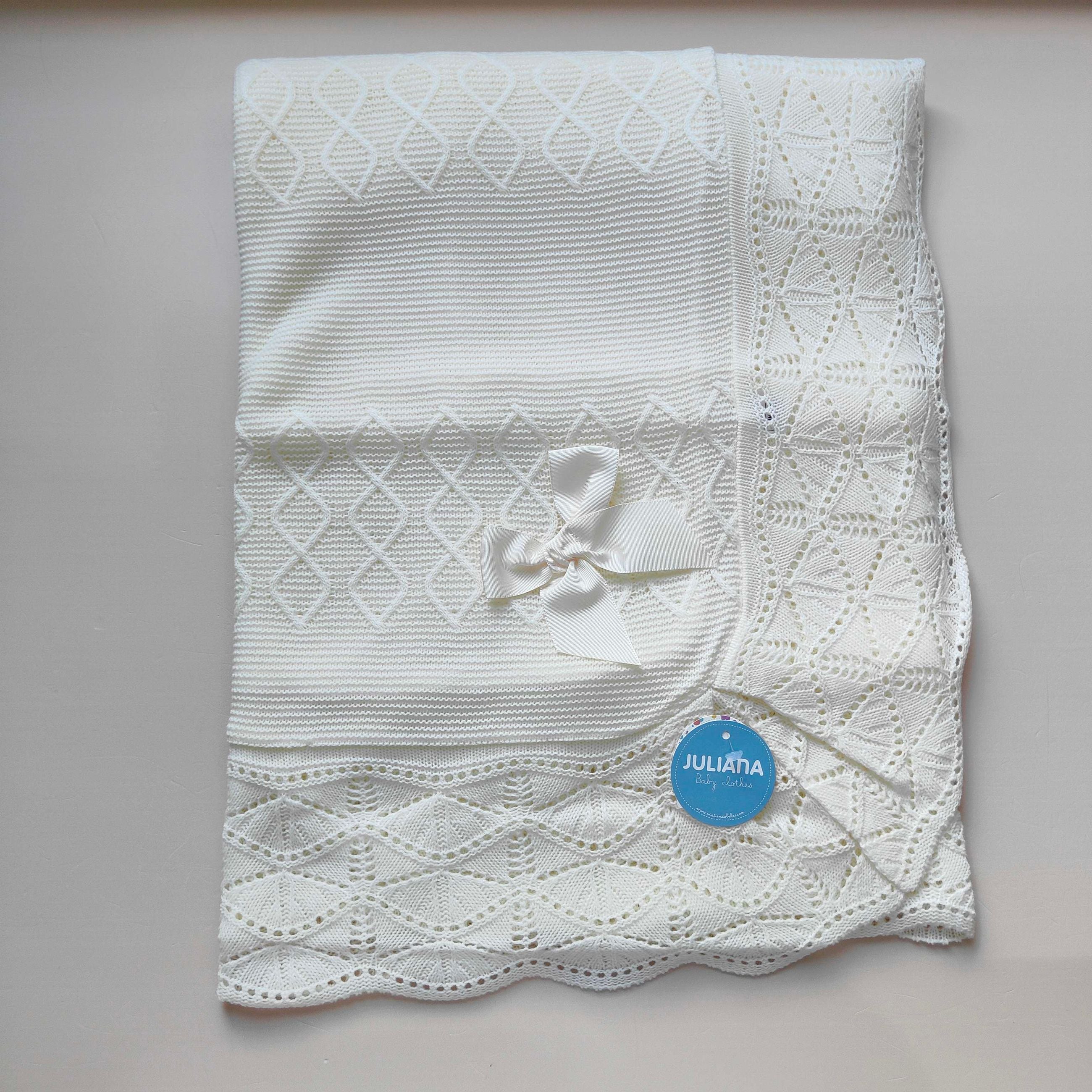 Copertina in misto lana con rombetti e fiocco