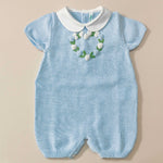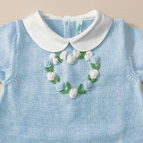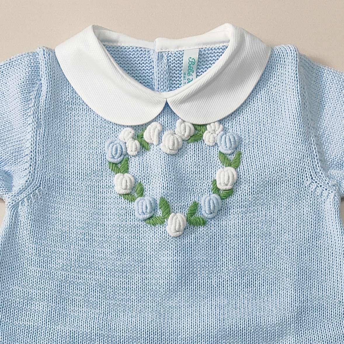 Pagliaccetto in filo 100% cotone con roselline vapore ricamate a mano