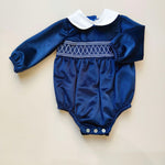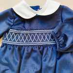 Pagliaccetto in vellut con punto smock , colletto removibile in piquet