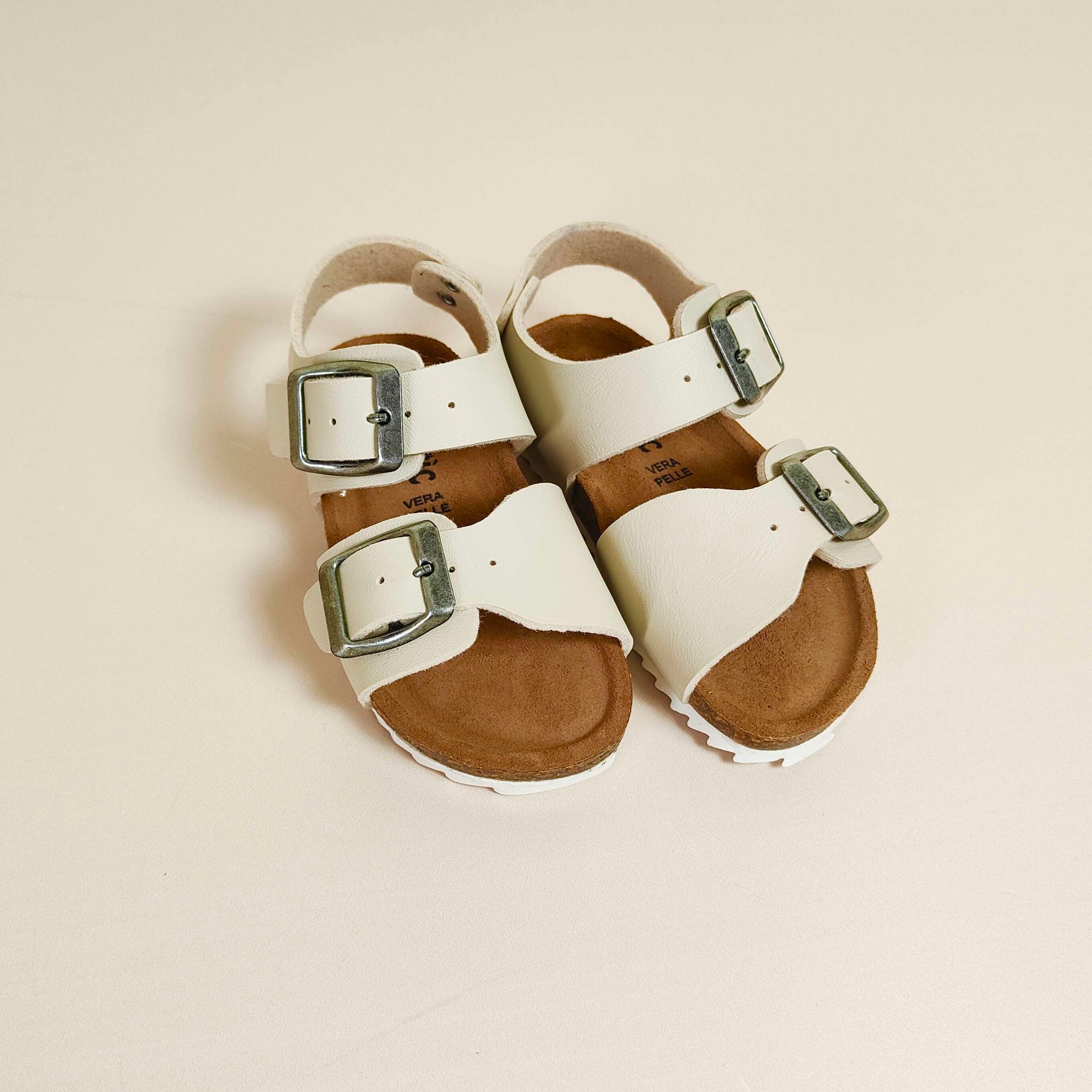 Sandaletti in vera pelle con chiusura doppia fibia