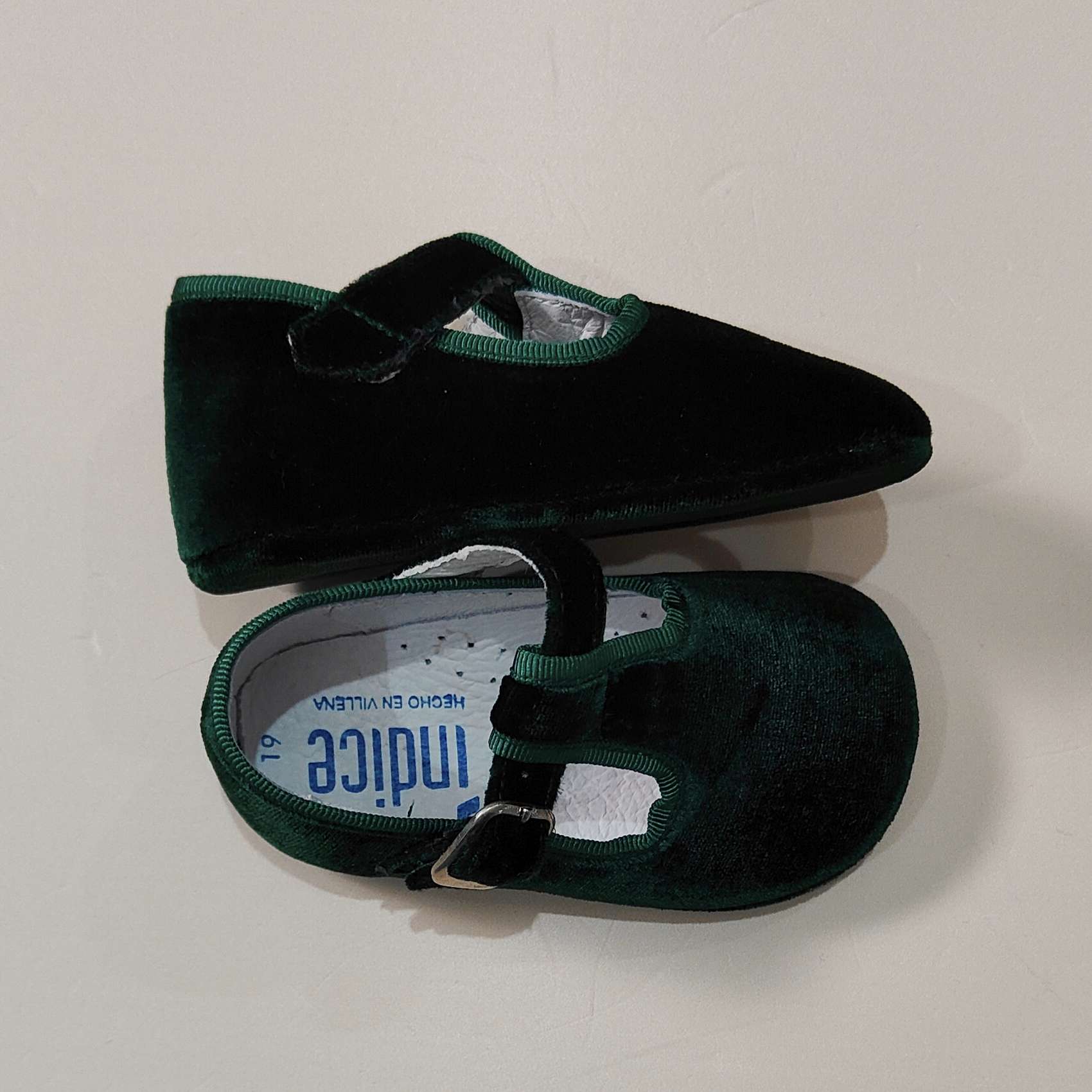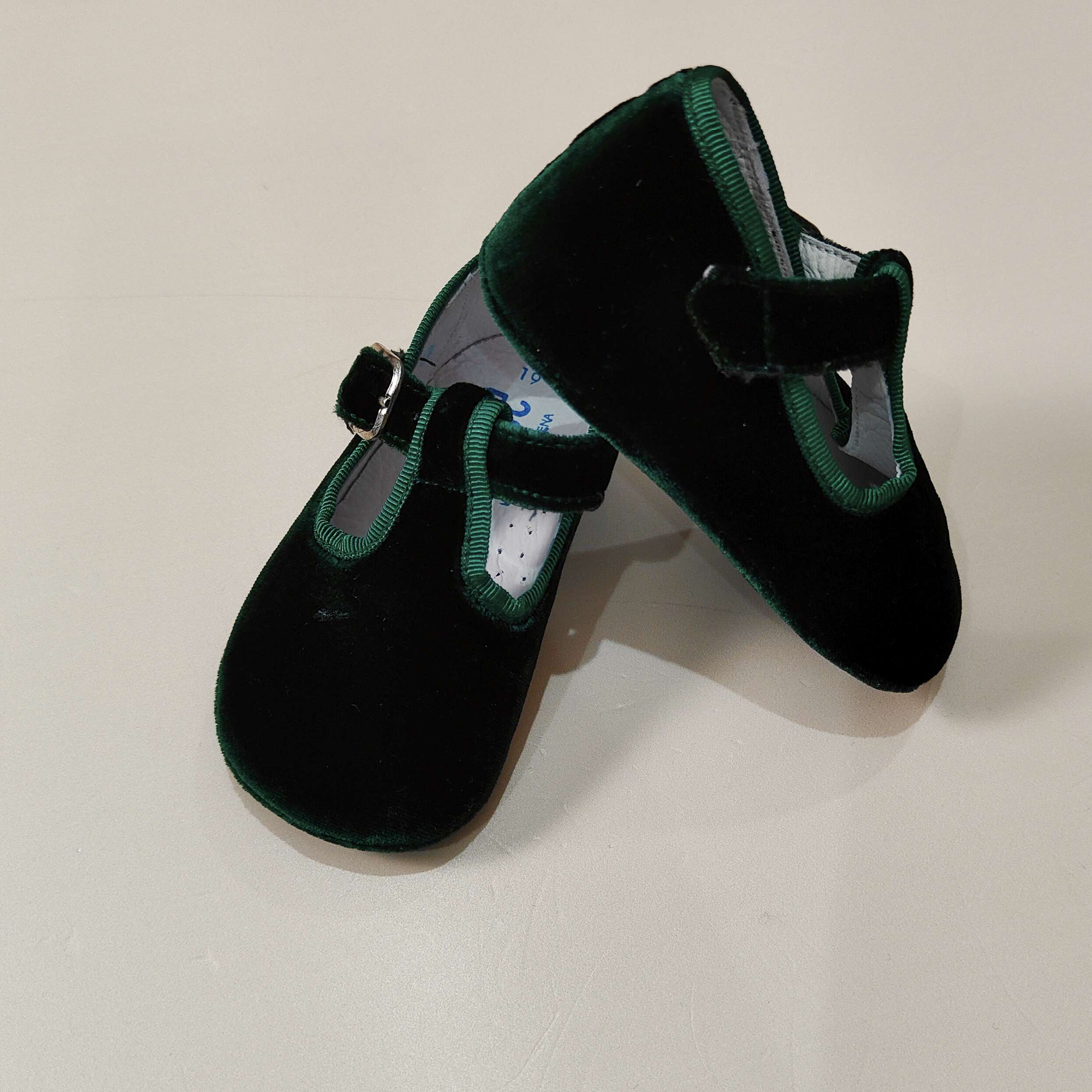 Scarpine culla in velluto , chiusura con fibia