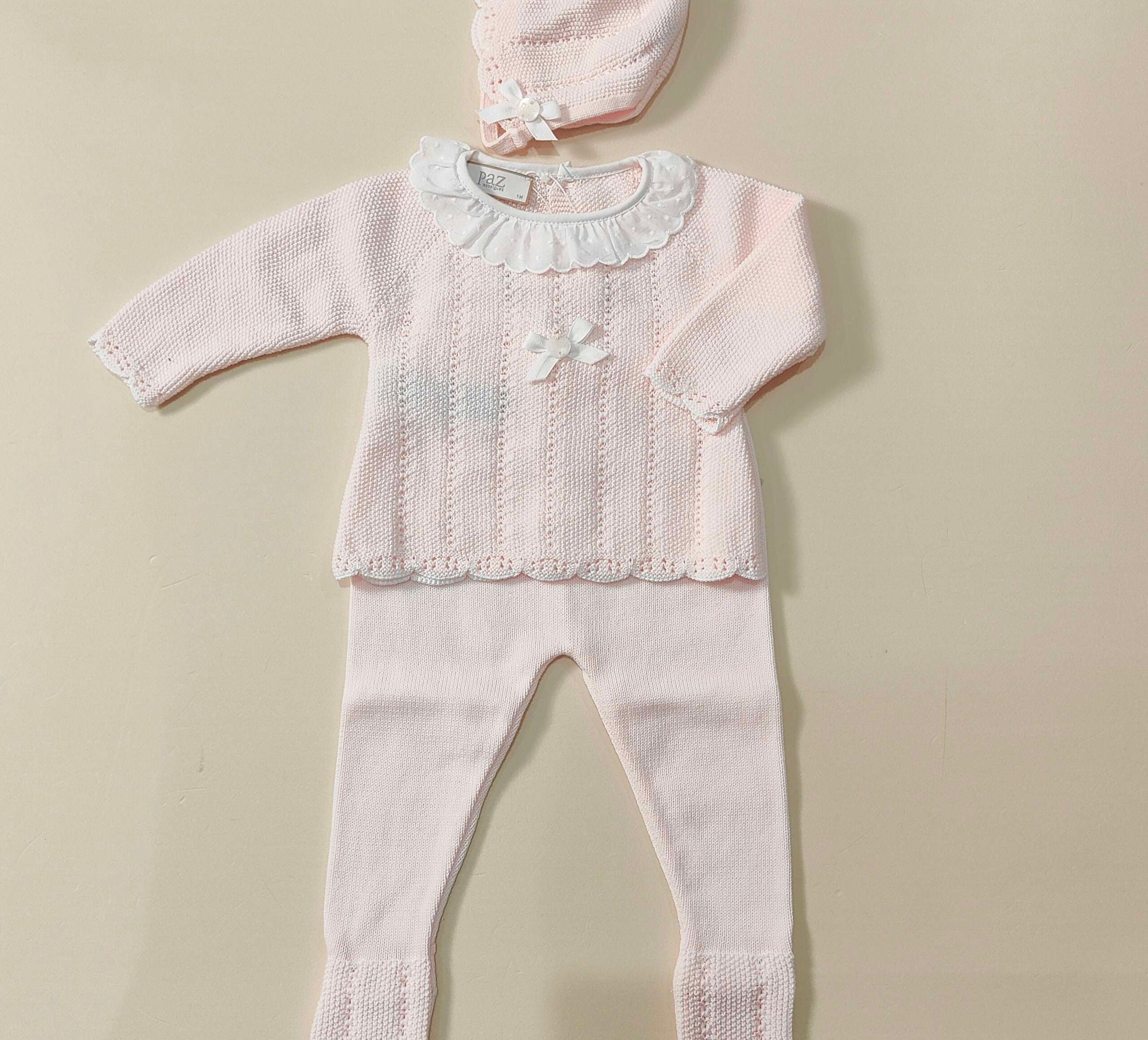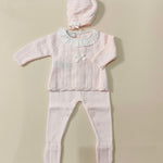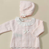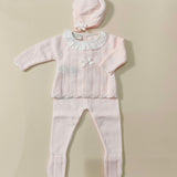 Completino e cuffietta in filo 100% cotone con smerlino e colletto in plumetis
