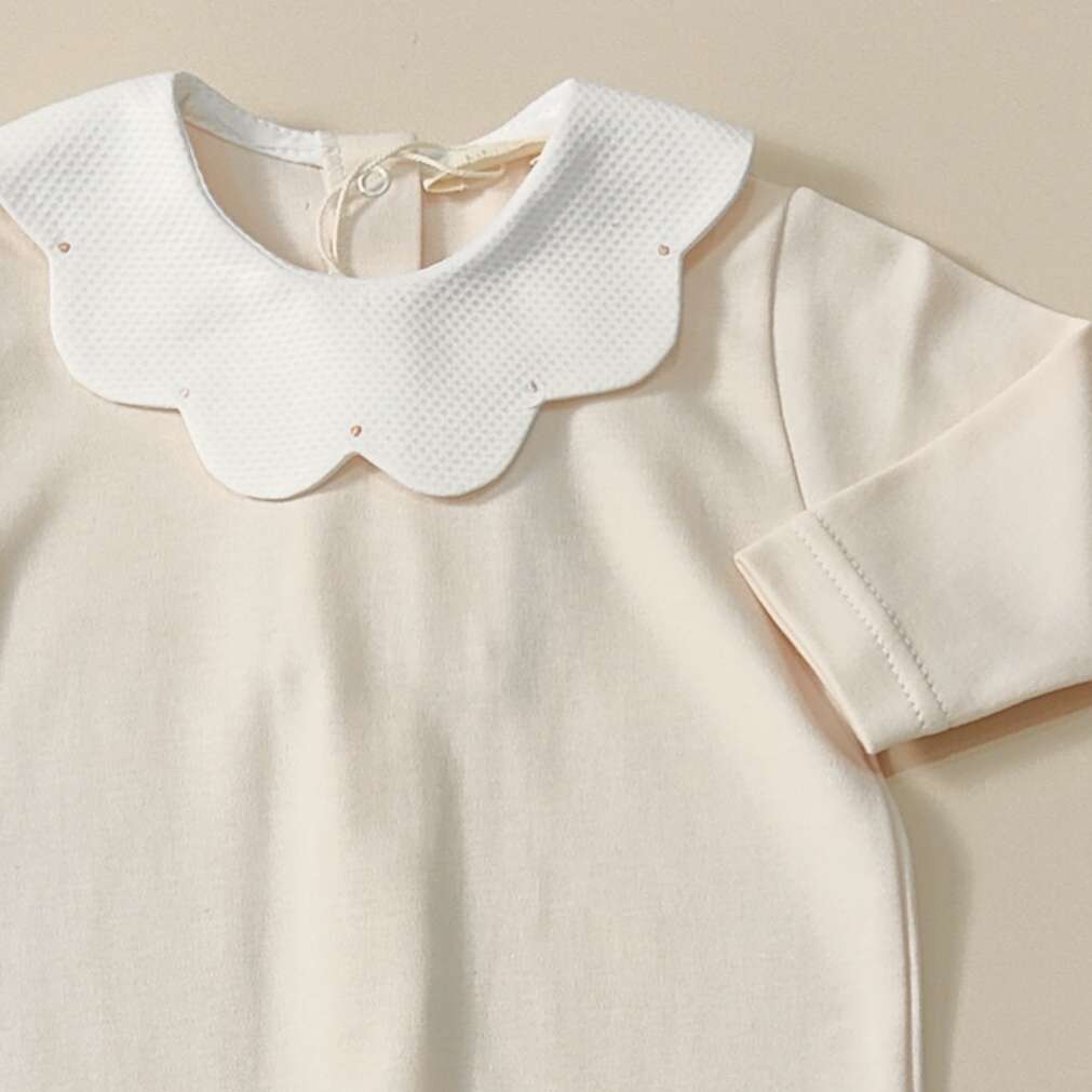 Tutina in puro cotone con colletto in piquet ricamato