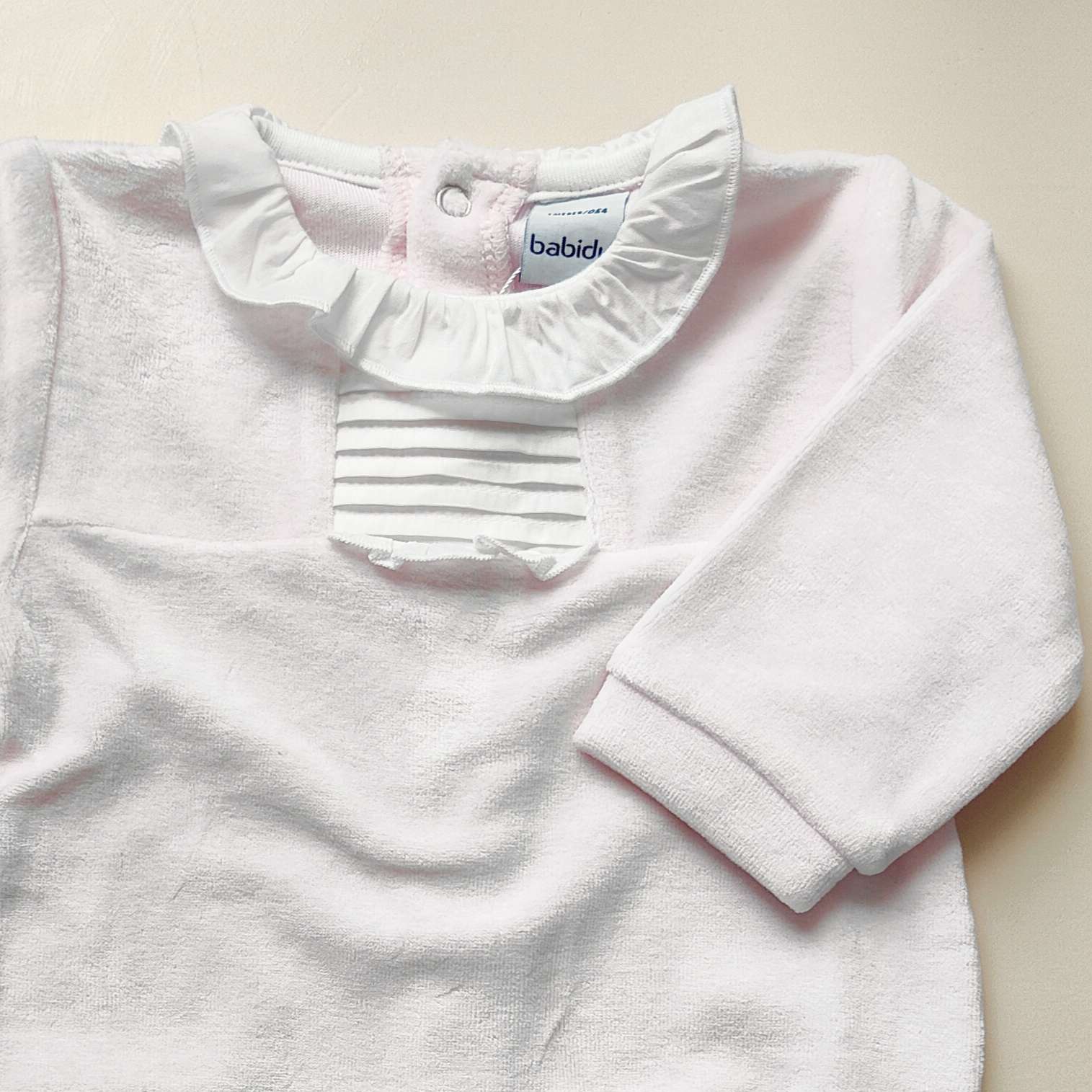 Tutina in ciniglia con colletto rouche