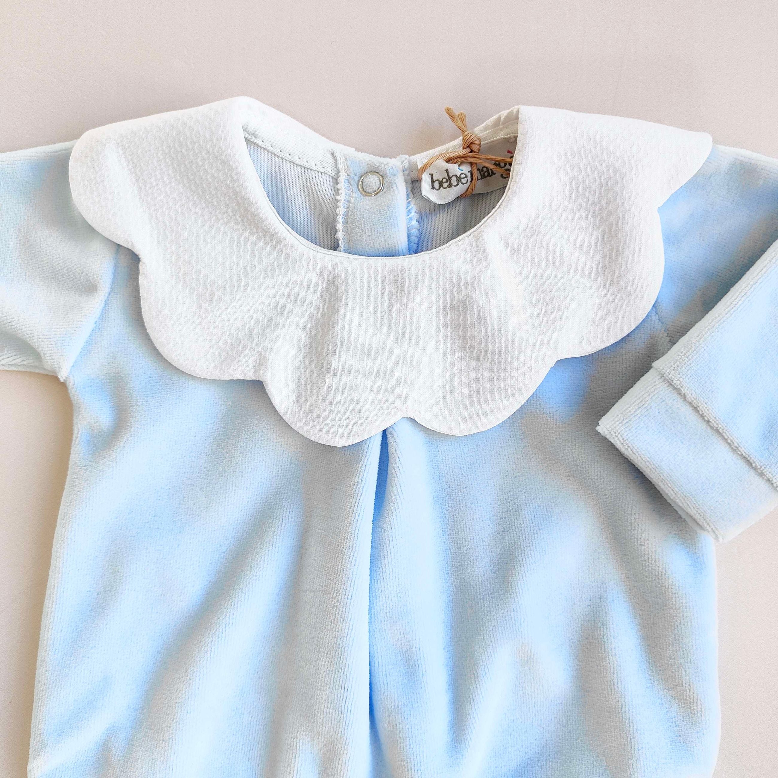 Tutina in ciniglia con colletto smerlato in piquet