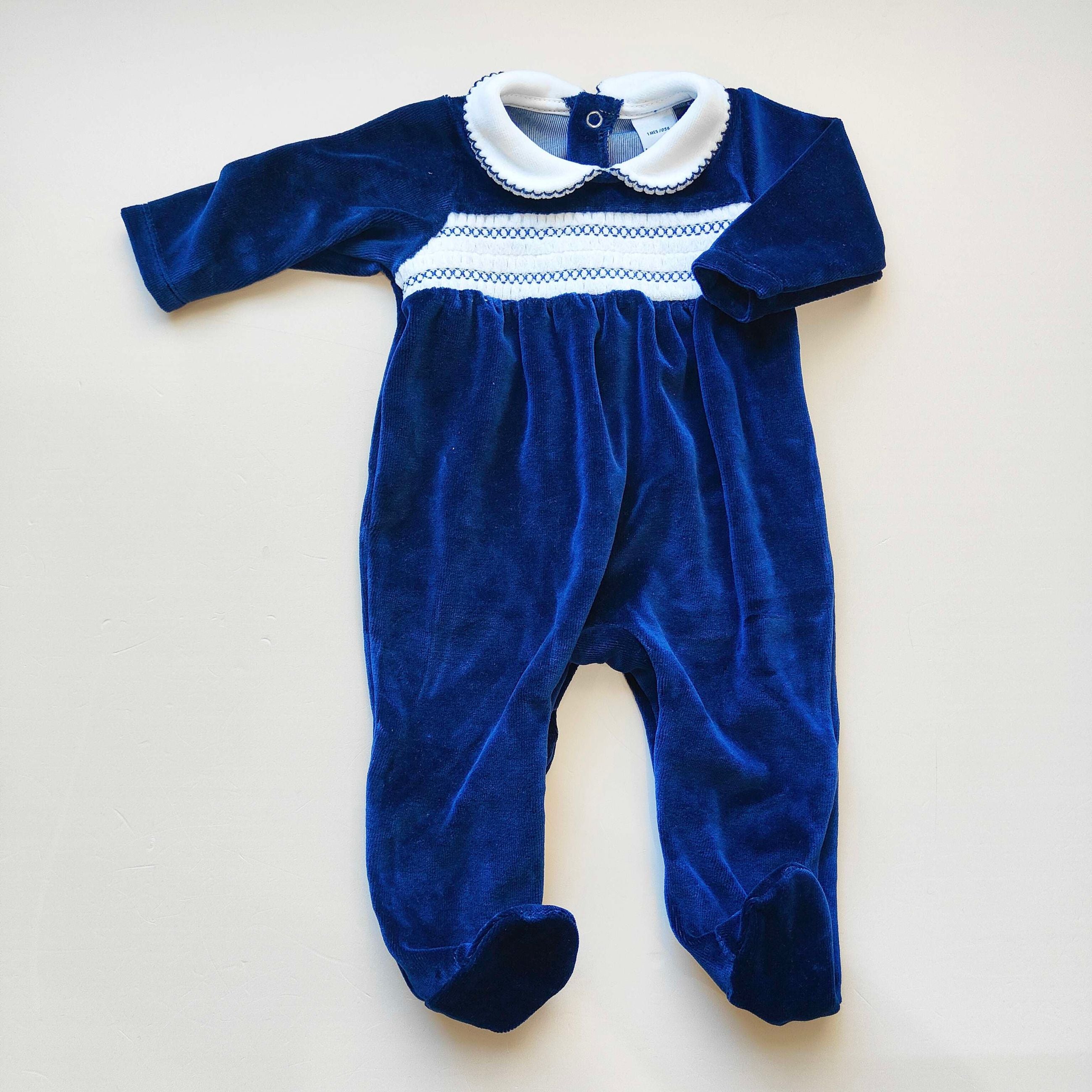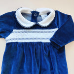 Tutina in ciniglia con punto smock sul petto