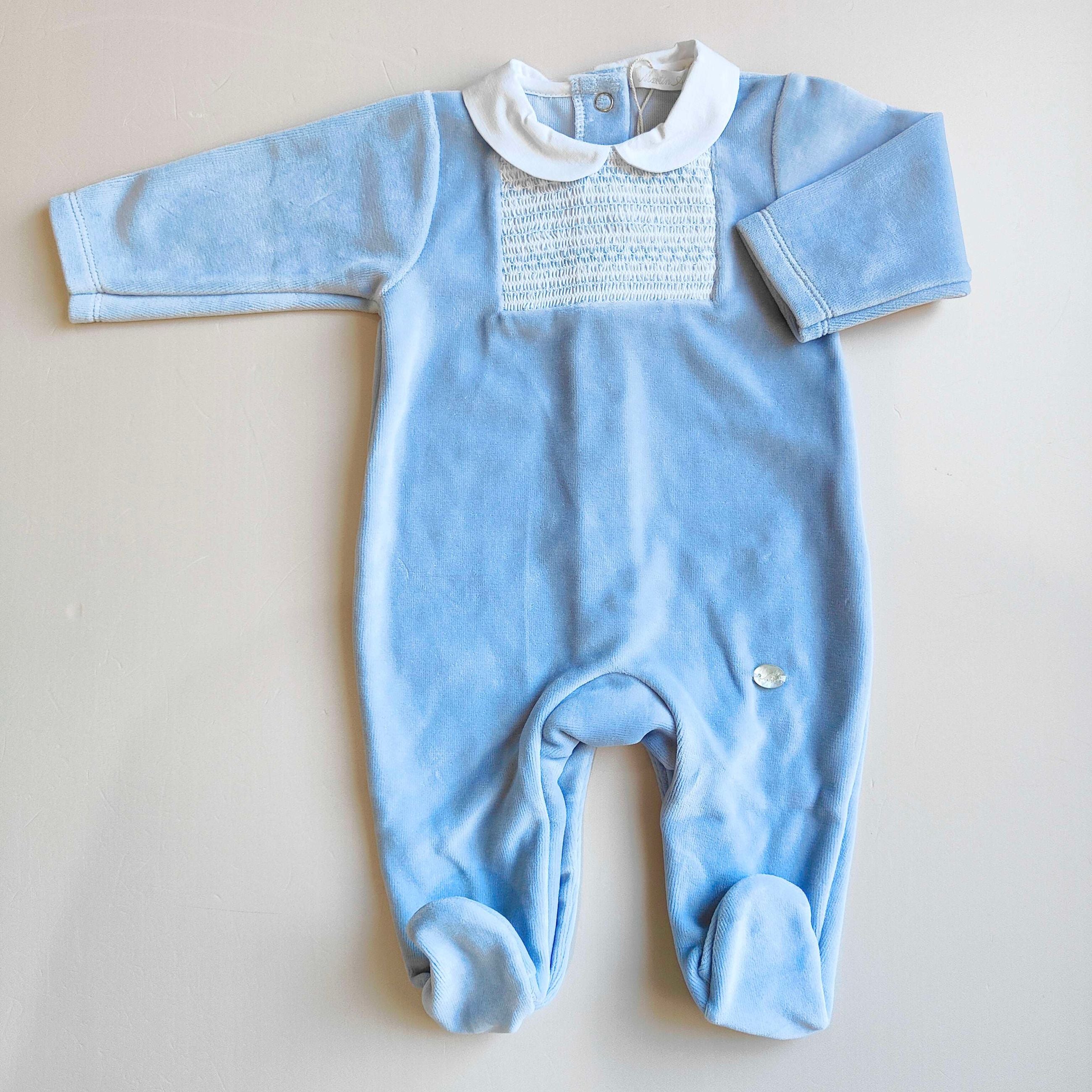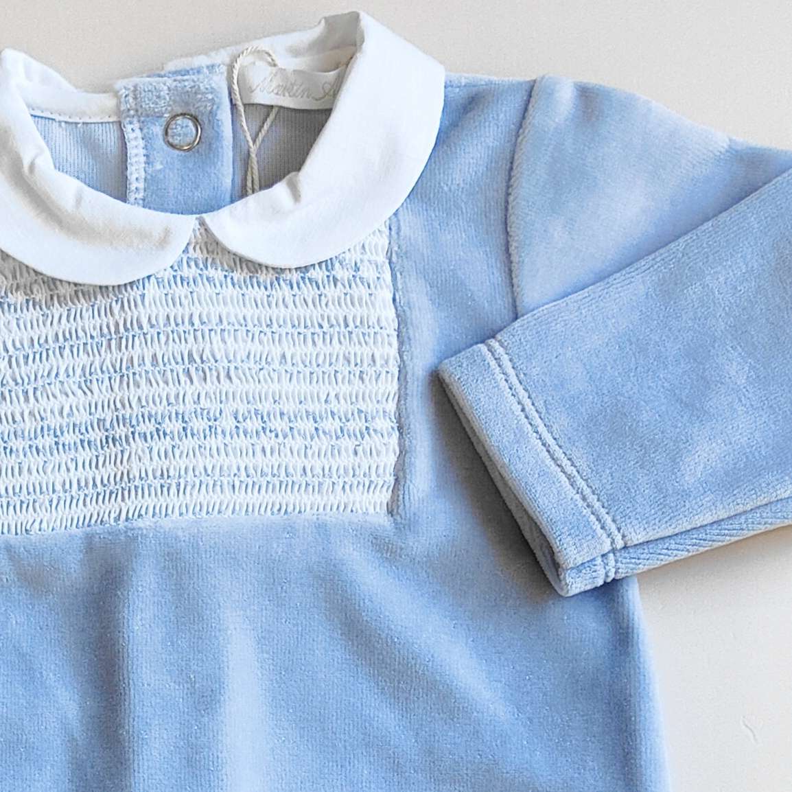 Tutina in ciniglia con punto smock , colletto in batista
