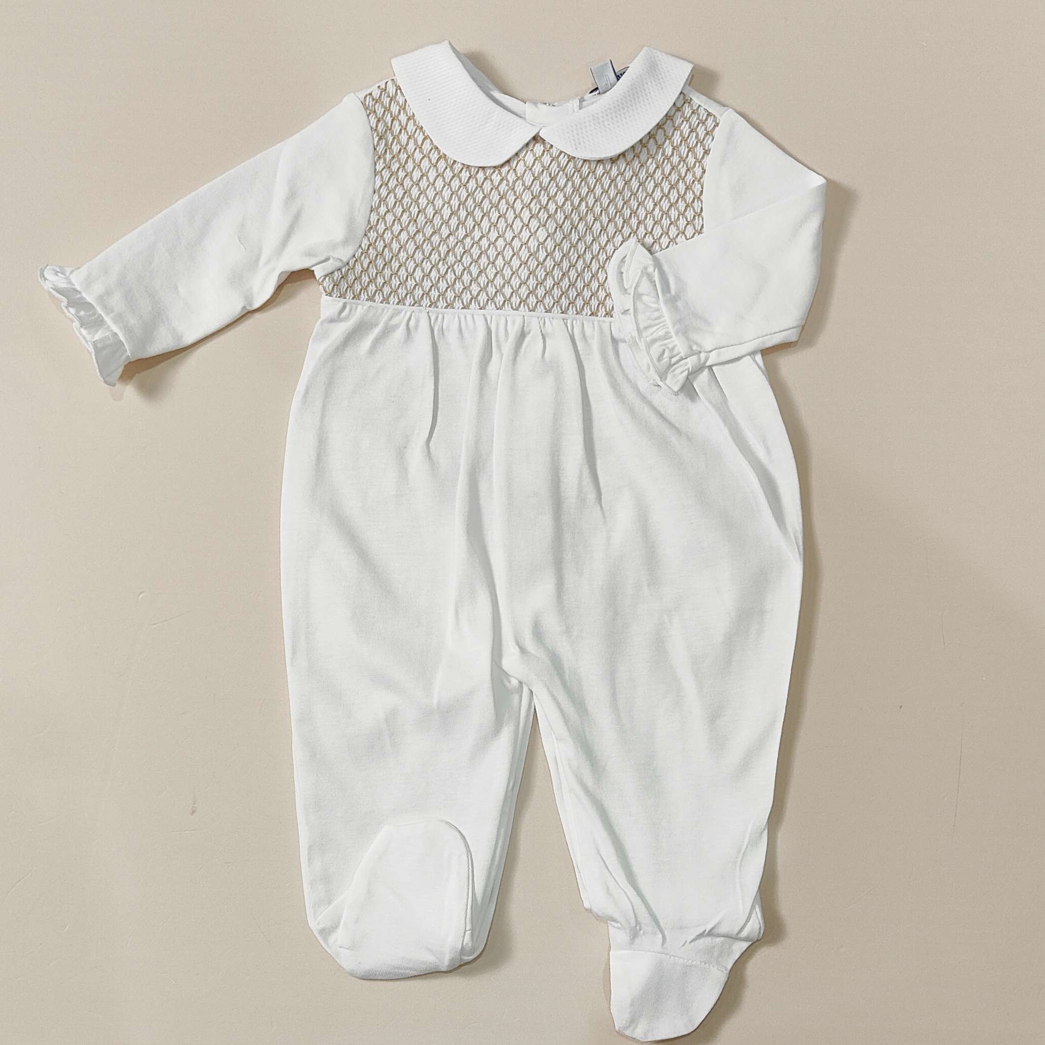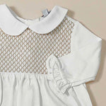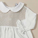 Tutina in cotone con punto smock sul petto