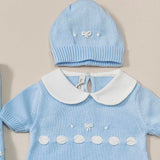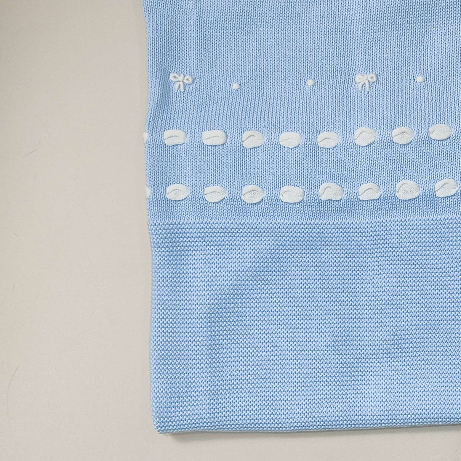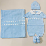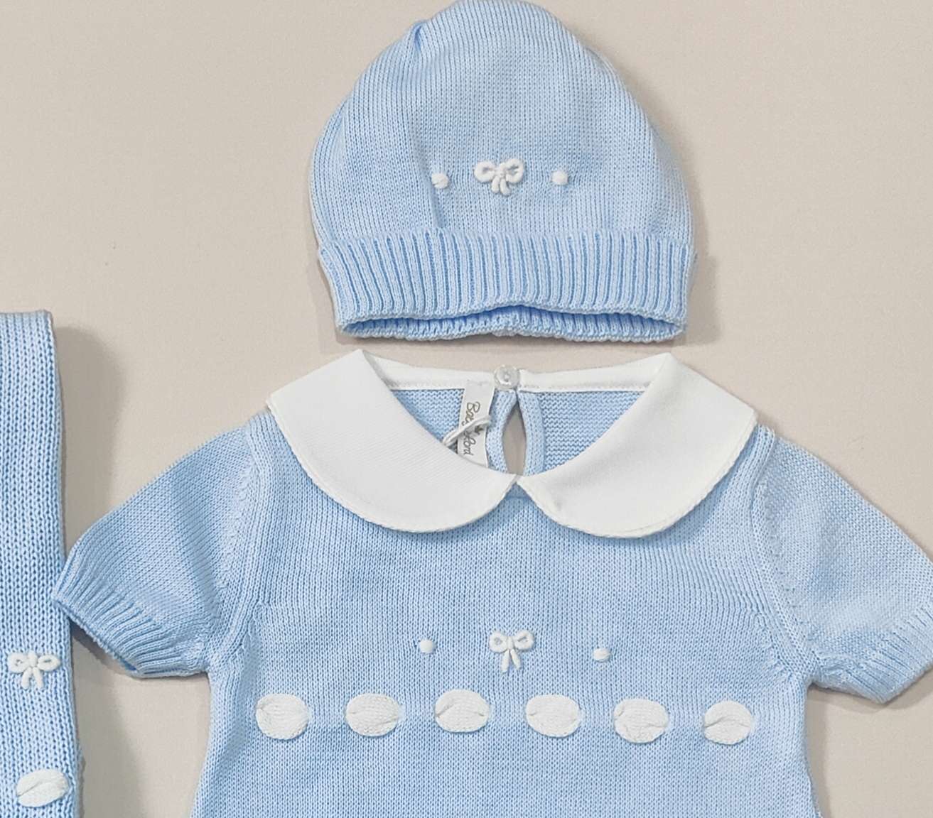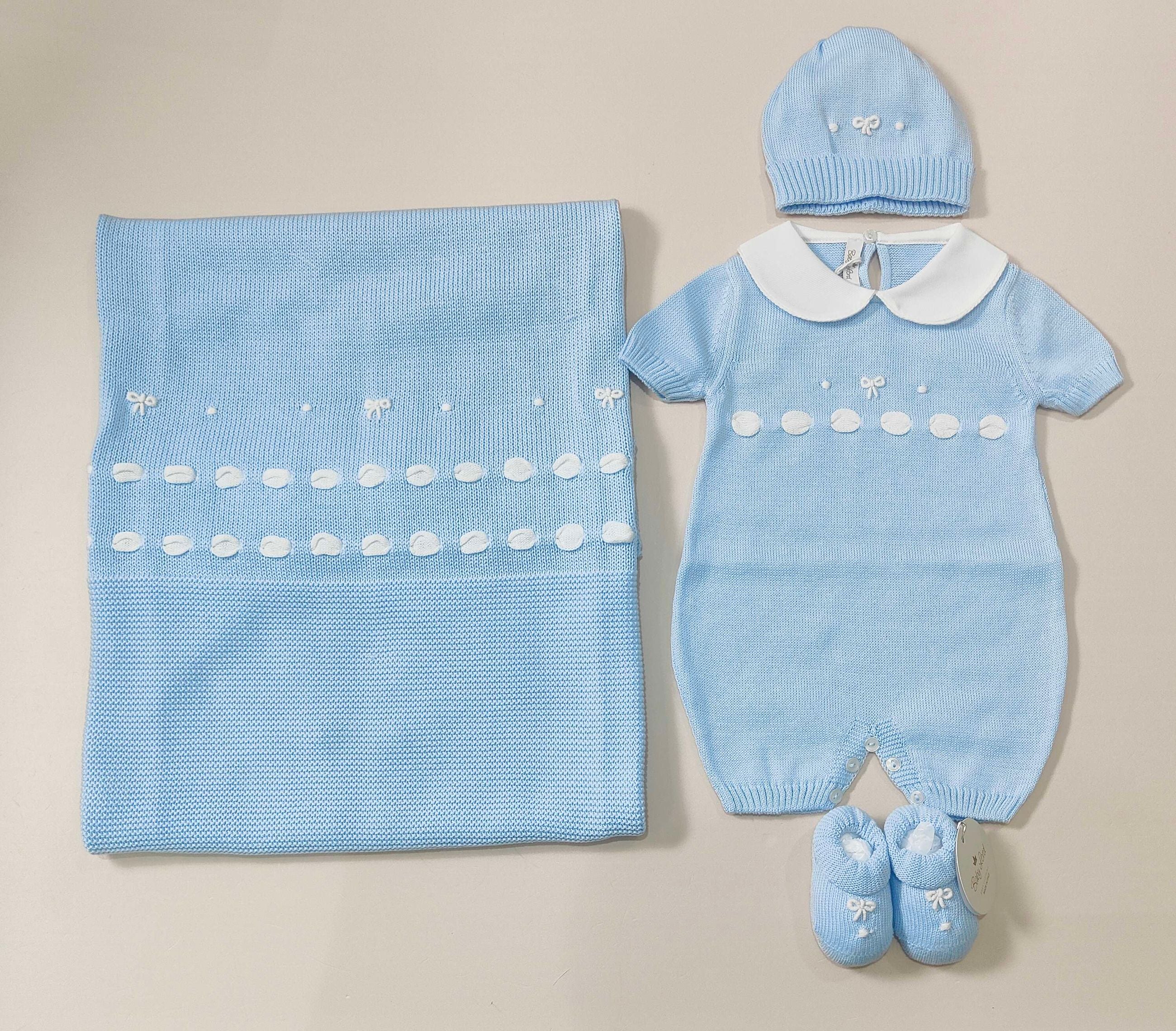 Coordinato nascita in filo 100% cotone con fiocchi ricamati a mano. Comprende :