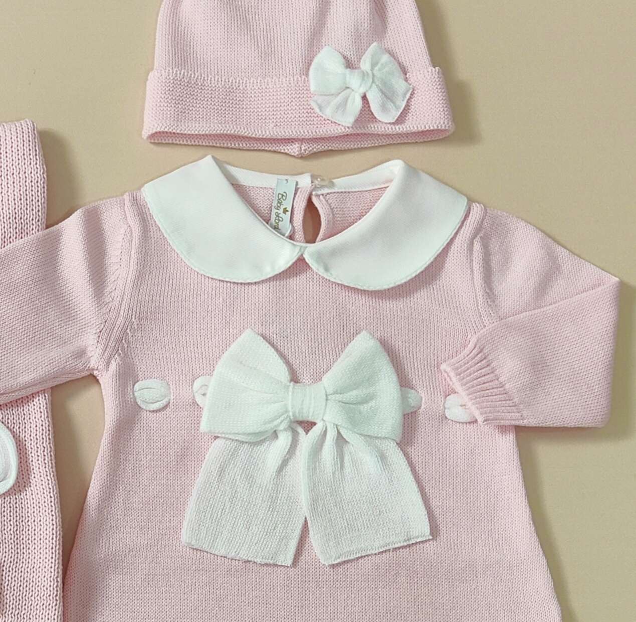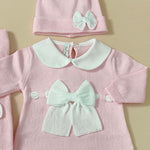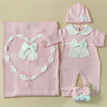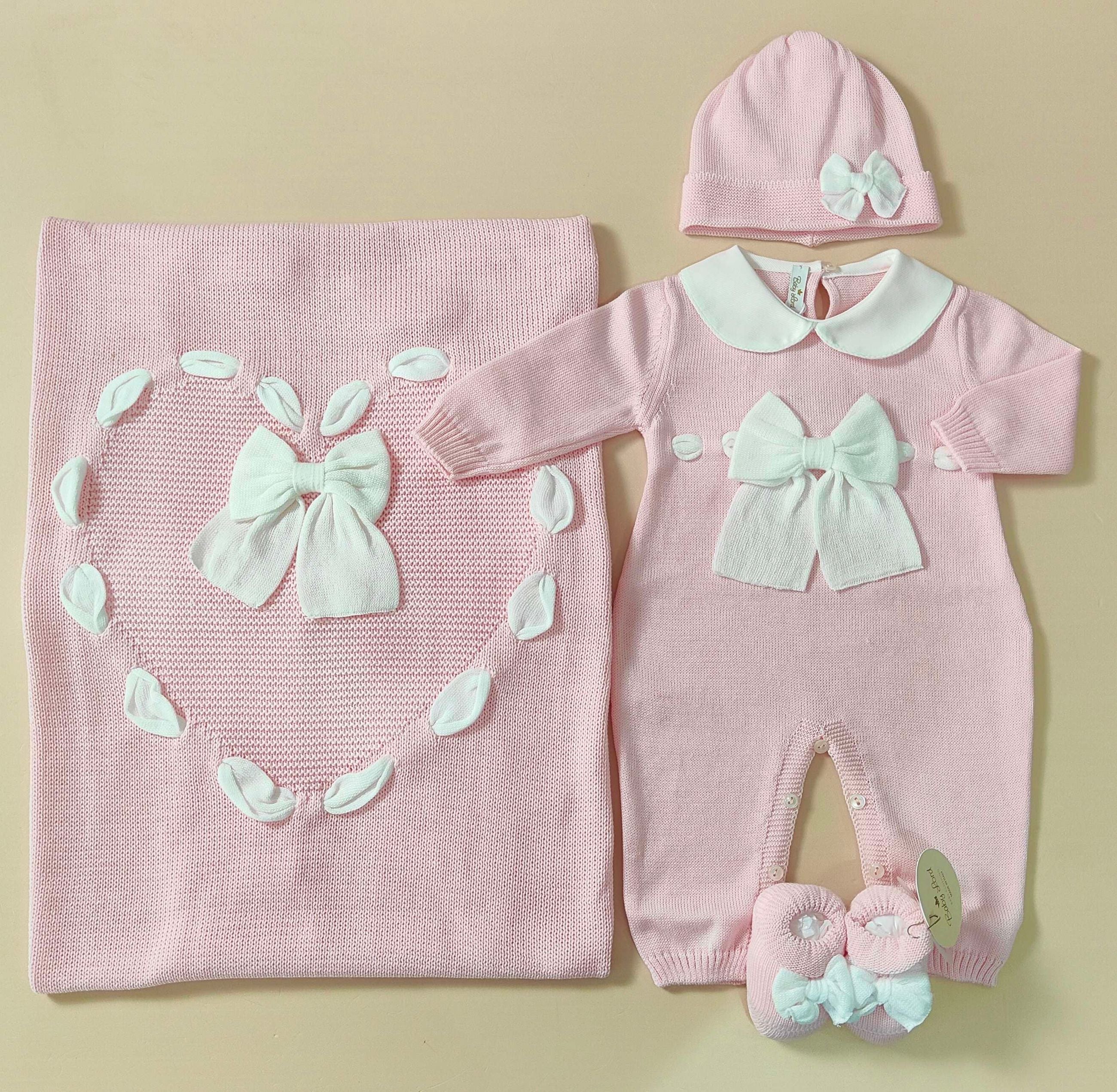 Coordinato nascita in filo 100% cotone con fiocco , comprende :