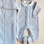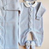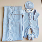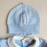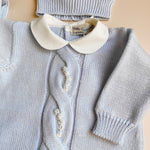 Coordinato nascita in pura lana merino con roselline ricamate a mano. Comprende :